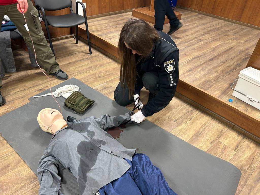 Зупиняти кровотечу, пампонувати рани, накладати пов’язки, робити серцево-легеневу реанімацію, надавати допомогу при пораненні, травмах, опіках, обмороженні, втраті свідомості та інших невідкладних станах – обов’язкові навички для працівників правоохоронних органів, які одні із перших реагують на повідомлення про надзвичайні події та правопорушення.