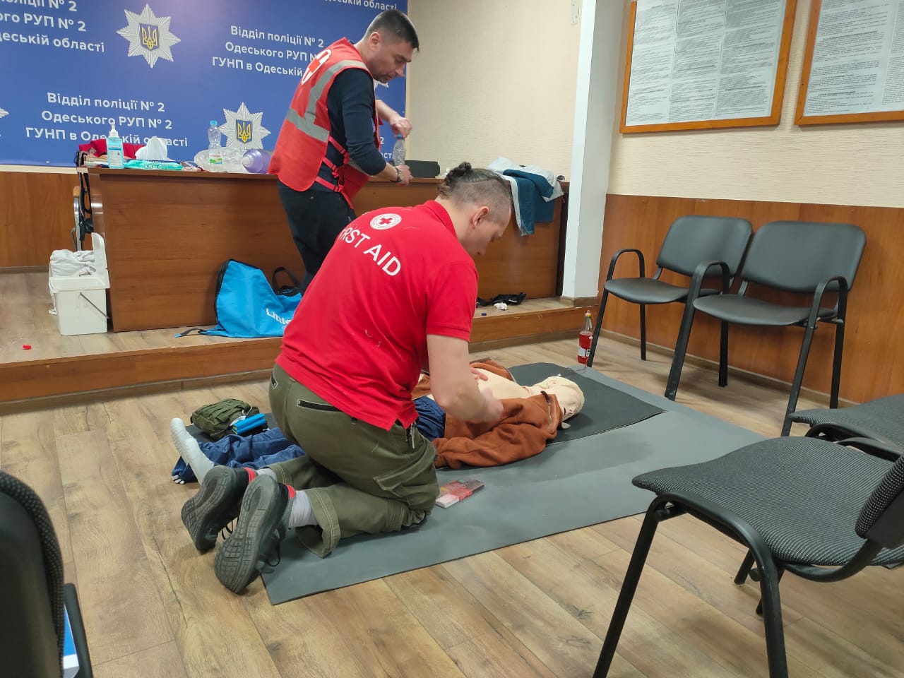 Досвідчені інструктори провели з правоохоронцями заняття з надання першої долікарської допомоги, на яких виклали курс теорії і змоделювали різні екстремальні ситуації. Поліцейські злагоджено, швидко та професійно відпрацювали на практиці отримані фахові знання.