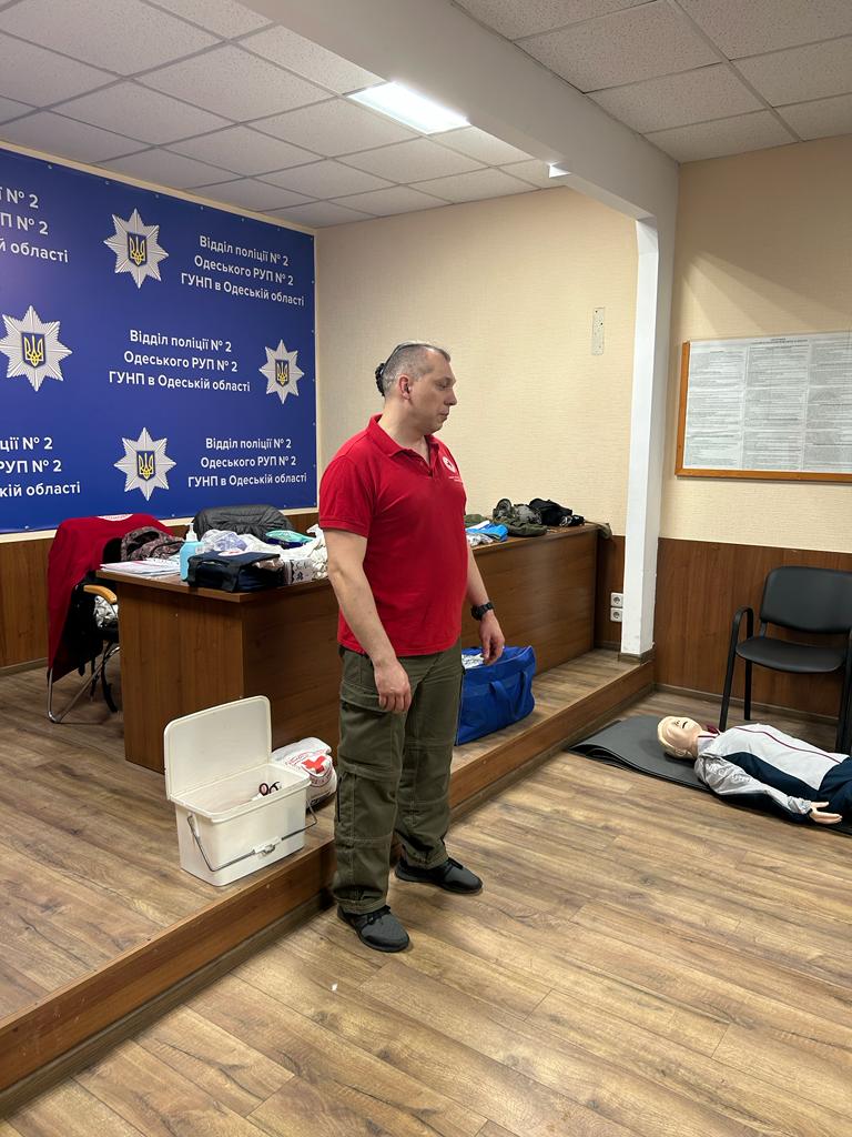 Під час навчання представники Одеської обласної організації Товариства Червоного Хреста України на чолі з т.в.о. голови Чорноморської МО ТЧХУ Миколою Руслановим та головним фахівцем Департаменту першої допомоги Вадимом Силіном передали поліцейським парамедичні рюкзаки, у яких є все необхідне для порятунку життя.