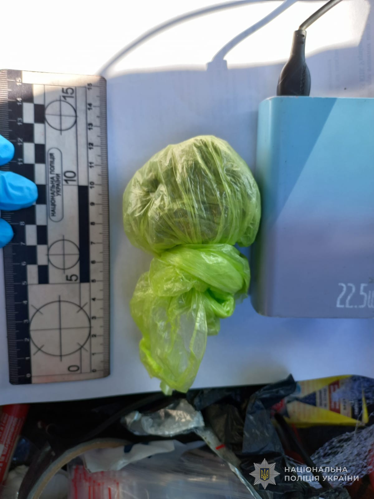 Поліцейські зупинили містянина на одній із вулиць Хаджибейського району, де він розвозив «товар» мотоциклом. Правоохоронці вилучили із двоколісника 22 згортки з канабісом, які водій планував збути шляхом «закладок», а ще чотири згортки з аналогічним вмістом вилучили зі схованок, які він вже встиг зробити. Походження наркотичного засобу слідчі підтвердили за допомогою експертного висновку. Крім цього, в якості речових доказів було вилучено пакувальний матеріал, ваги, мобільний телефон фігуранта з інформацією, що підтверджує протиправність його дій, та транспортний засіб.