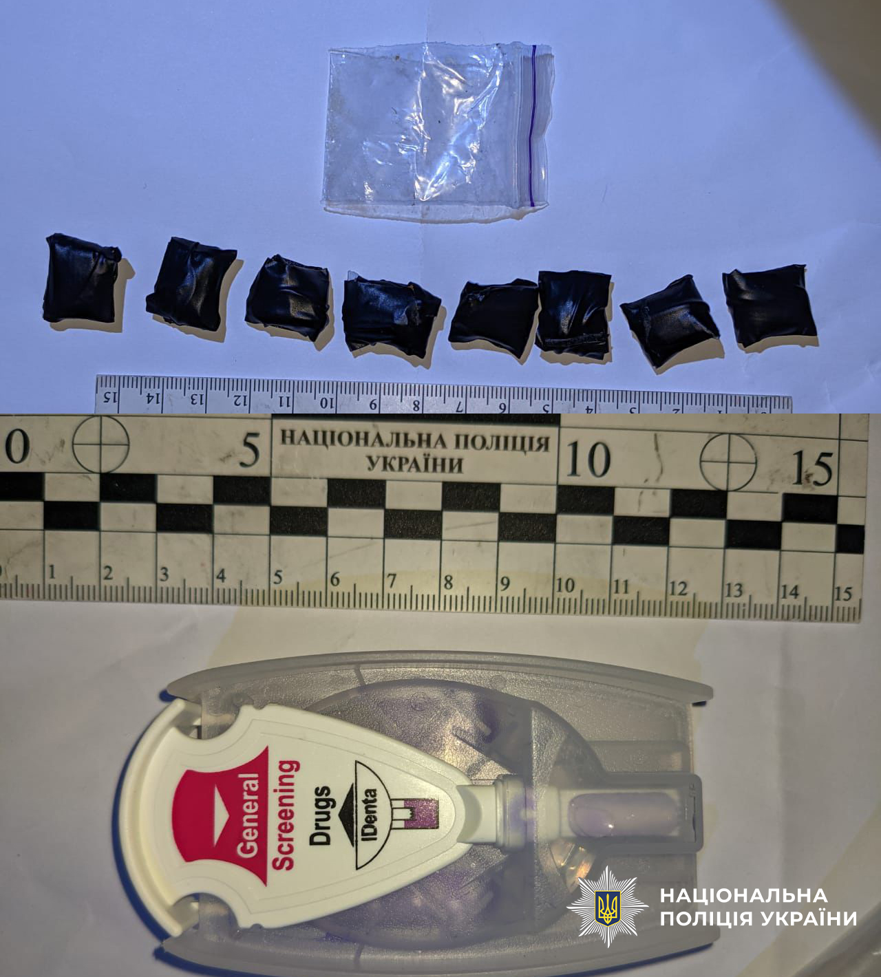 Викликана на місце події слідчо-оперативна група, виявила та вилучила у містянки, а також зі зроблених нею схованок, 10 згортків з особливо небезпечними психотропними речовинами. Вміст пакетиків поліцейські перевірили експрес-тестом, після чого скерували на експертне дослідження.