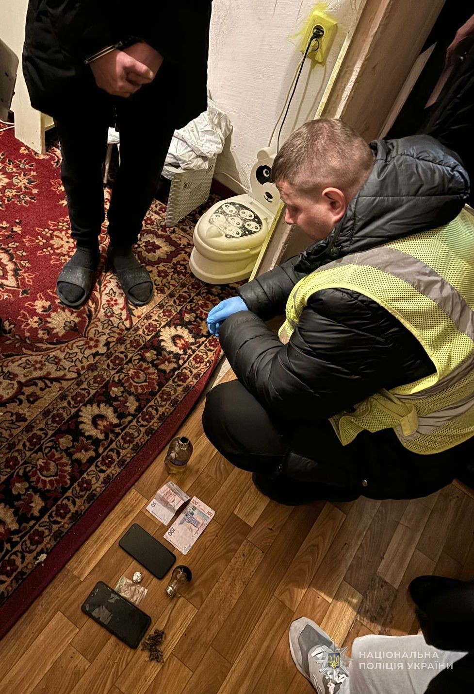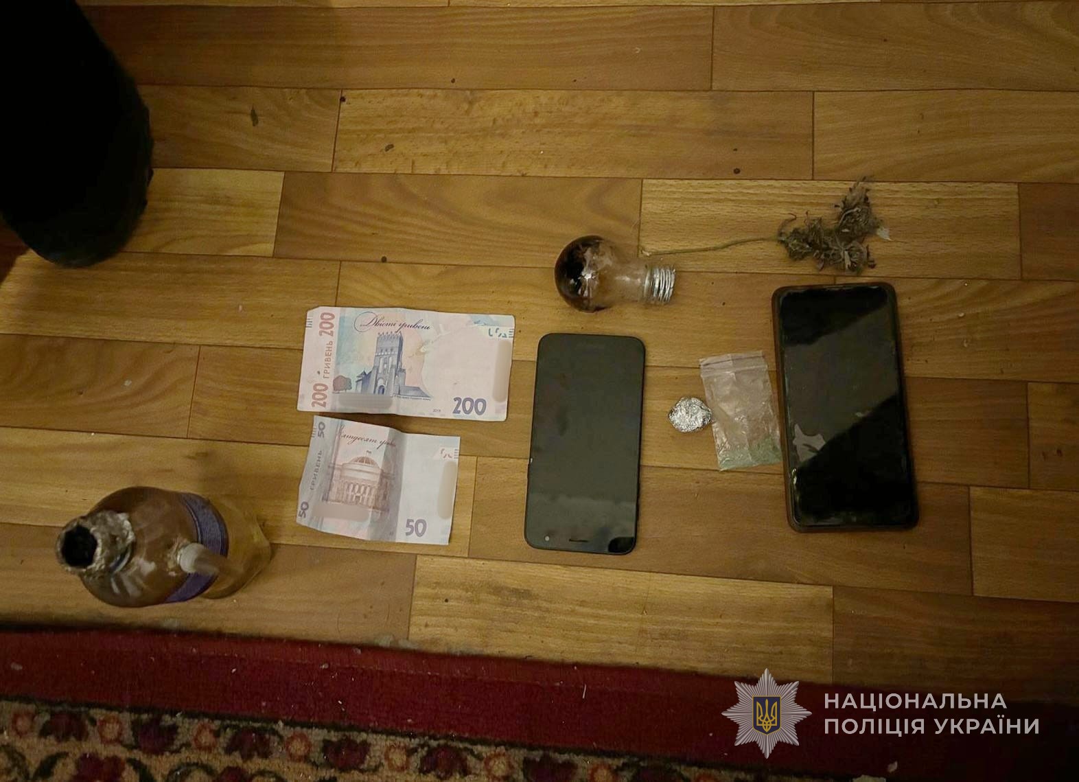 За місцем мешкання зловмисника поліцейські провели санкціонований обшук, під час якого виявили різні речовини рослинного й синтетичного походження, схожі на канабіс та амфетамін, саморобні пристрої для вживання наркотиків та інші речі, які підтверджують його протиправну діяльність. Вилучені речовини також скерували на експертизу для встановлення походження й ваги.