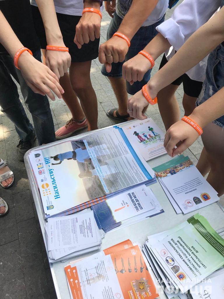 Посадовці роздали людям пам’ятки, в яких містилася інформація про те, що кожен постраждалий від неправомірних дій може зателефонувати на Національну «гарячу лінію» з запобігання домашньому насиллю, торгівлі людьми та гендерній дискримінації за телефоном 0800500335 або 116123. Також громадяни можуть звернутися безпосередньо в територіальні підрозділи поліції або на спецлінію «102».