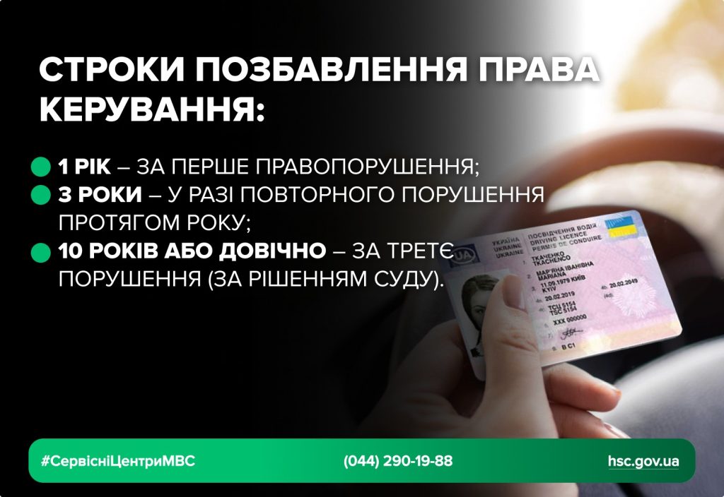 Головний сервісний центр МВС нагадує: у випадку позбавлення права керування транспортними засобами за рішенням суду, зокрема за статтею 130 Кодексу України про адміністративні правопорушення (керування в стані сп’яніння), посвідчення водія не повертається автоматично. Після завершення строку позбавлення водій зобов’язаний підтвердити свою здатність до безпечного керування транспортним засобом.