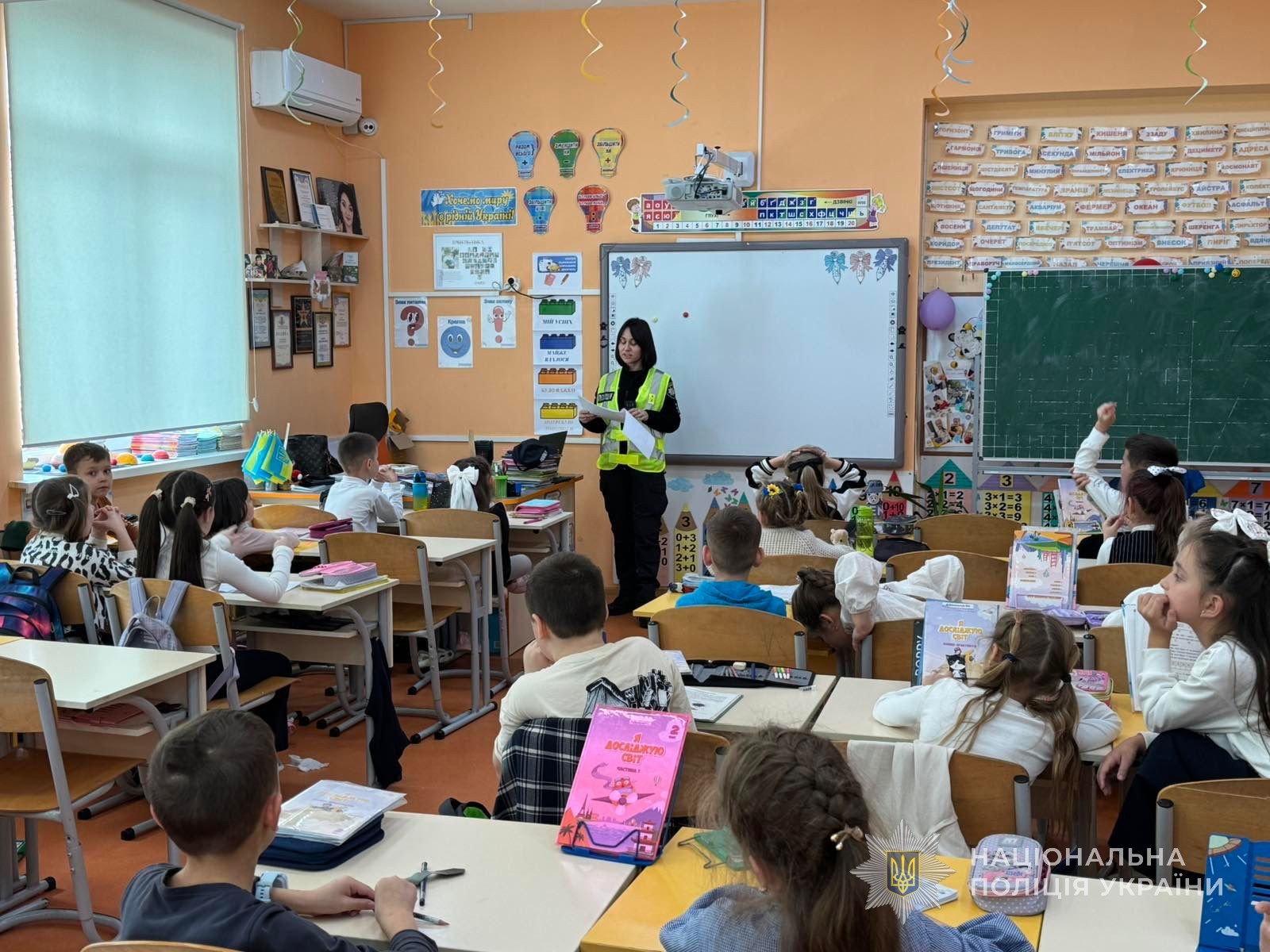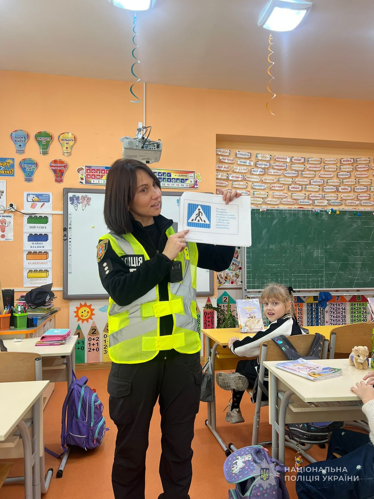 «Під час заняття учням нагадали основні вимоги Правил дорожнього руху для пішоходів. Увагу дітей акцентували на тому, що дорогу слід перетинати по пішохідному переходу, переконавшись, що водії зупиняються. А в темну пору доби та в умовах недостатньої видимості пішоходи, які рухаються проїзною частиною чи узбіччям, повинні використовувати світлоповертальні елементи. Якщо їх закріпити на одязі, взутті чи рюкзаках, вони значно підвищують рівень безпеки, адже допомагають водіям здалеку помітити пішоходів».