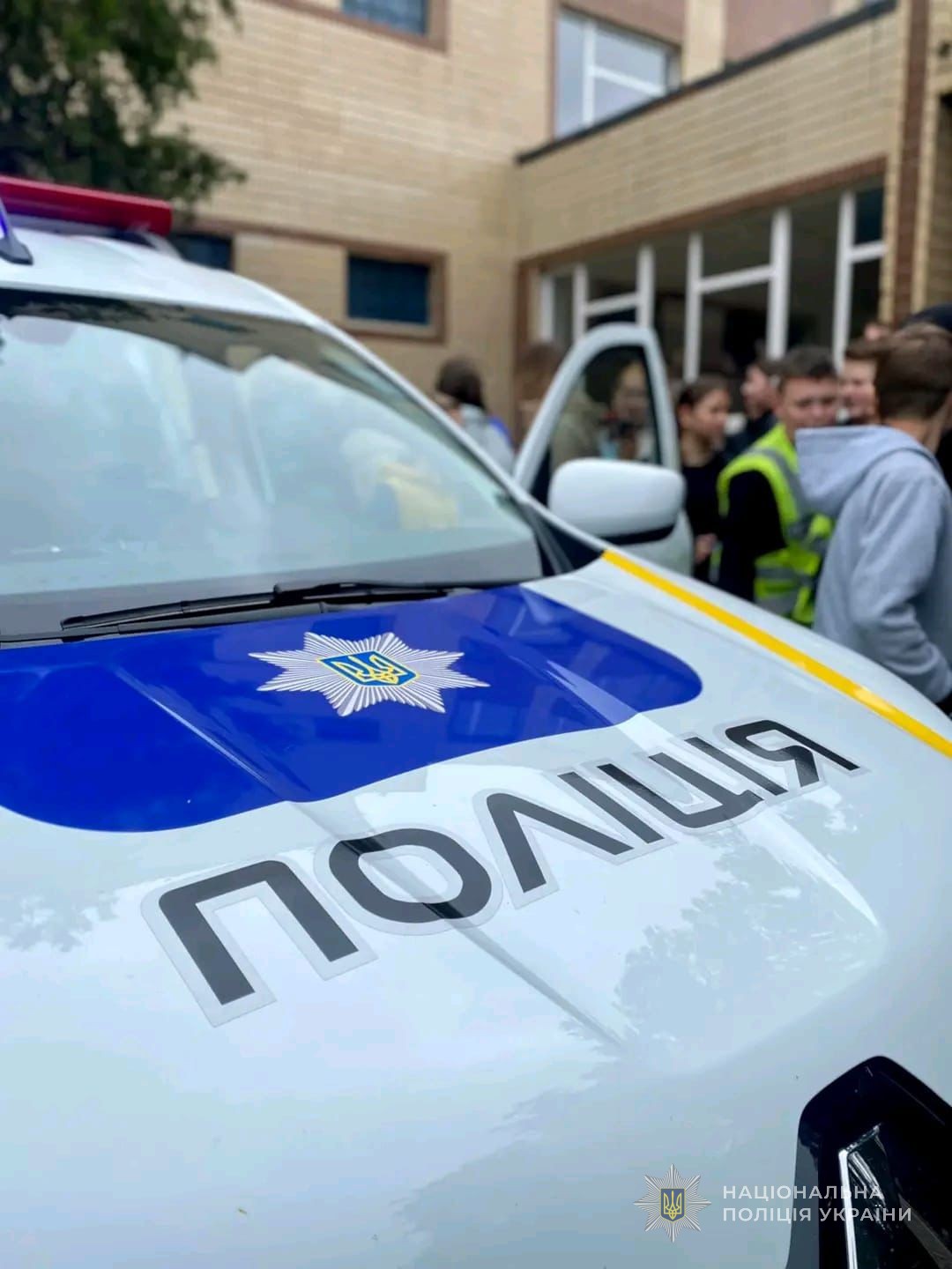 На даху школи нібито відбулося загорання електропроводки. Поліцейські злагоджено провели евакуацію усіх учасників навчального процесу, а вогнеборці швидко «загасили» вдавану пожежу.