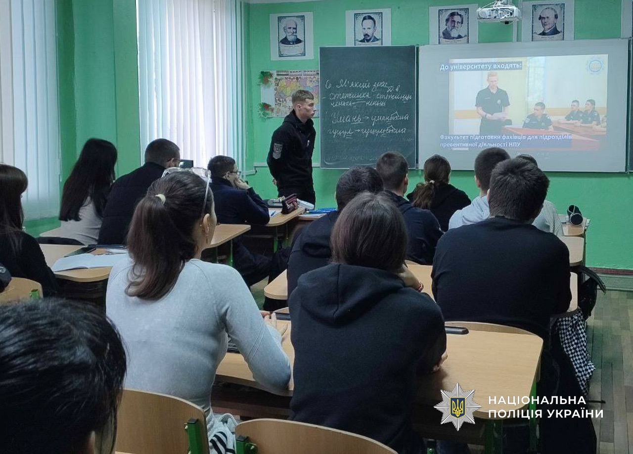 Один із профорієнтаційних заходів відбувся в Окнянському опорному закладі освіти. Його провели співробітниця сектору кадрового забезпечення Подільського районного управління поліції Ірина Запорожець та курсант Одеського державного університету внутрішніх справ Вадим Ковалюк.