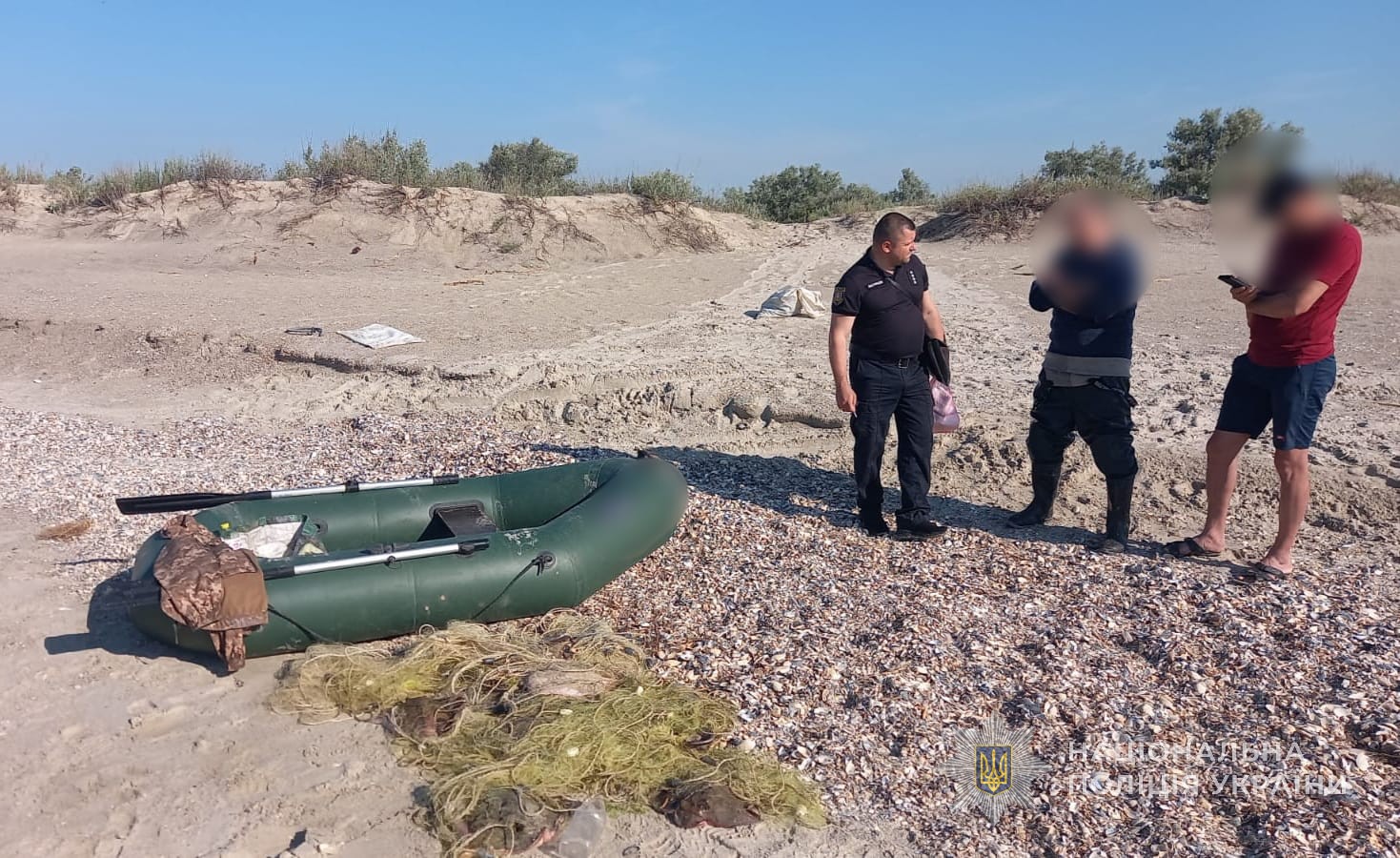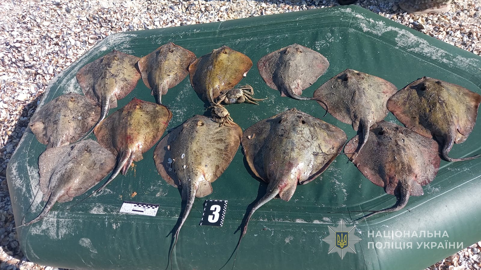 Викликана на місце події слідчо-оперативна група територіального підрозділу поліції попередньо встановила, що 57-річний житель Татарбунар на гумовому човні здійснював вилов живих біоресурсів забороненим знаряддям лову. В якості речових доказів дізнавачі вилучили у рибалки плавзасіб, дві ліскові сітки загальною довжиною 140 метрів, а також морських скатів та крабів загальною вагою понад 25 кілограмів. Незаконний улов поліцейські передали на зберігання спеціалізованому підприємству.