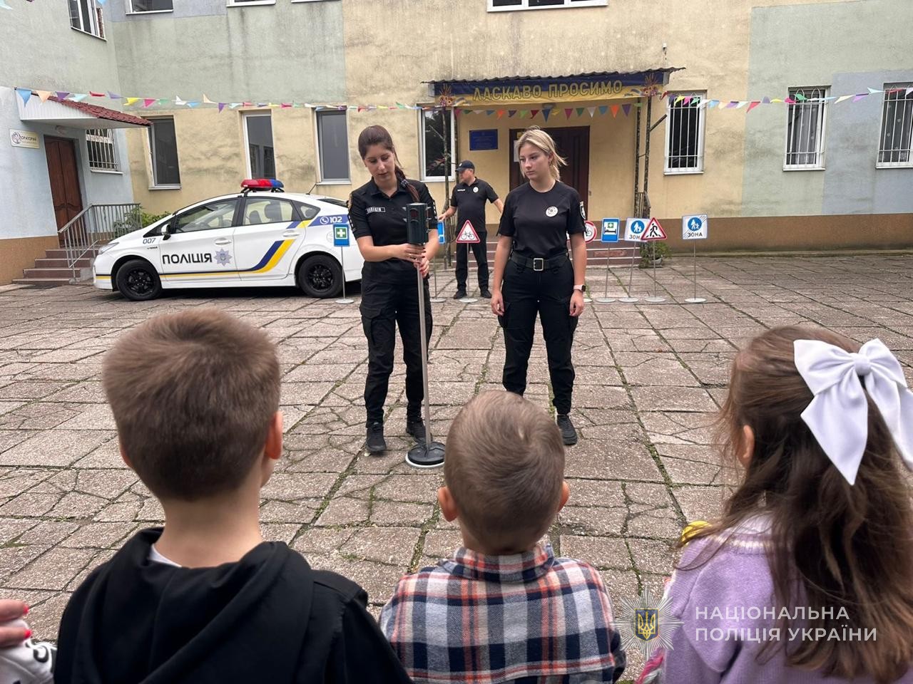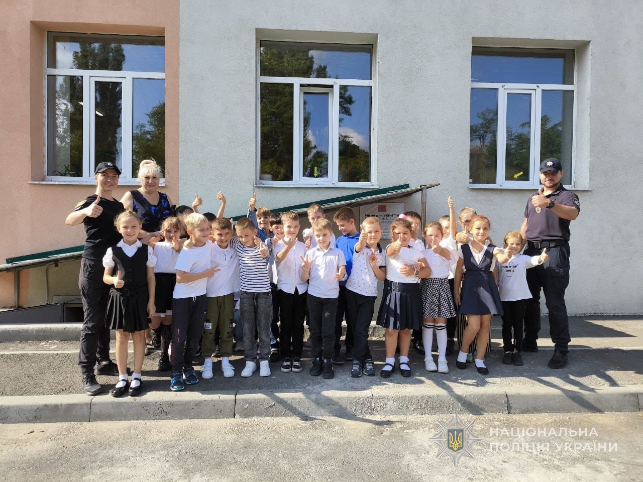 Нагадали поліцейські учням і правила дорожнього руху. За допомогою макетів школярі вивчили дорожні знаки та засвоїли, як правильно переходити проїзджу частину. Поліцейські вчергове проговорили, що слід рухатися виключно по пішохідному переходу, на зелений сигнал світлофора, впевнившись у відсутності транспорту, що наближається, або ж що водії помітили пішоходів, почали гальмувати і пропускати їх. Крім того, обговорили правила їзди на велосипедах та самокатах, закликали у темну пору доби користуватися світловідбивачами чи ліхтариками.