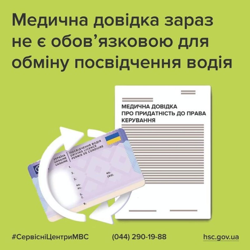 - у період воєнного стану заміна водійського здійснюється без надання медичної довідки, лише паспорт, ідентифікаційний код та посвідчення водія;
