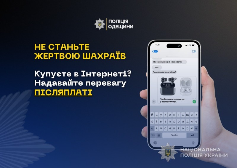 Поліцейські закликають громадян бути обачними при здійсненні онлайн-покупок у неперевірених продавців і не сплачувати гроші наперед, а надавати перевагу післяплаті.
