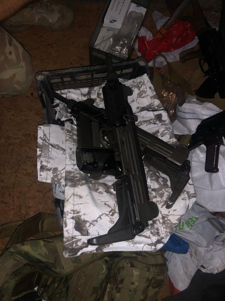Крім того, під час обшуків поліцейські виявили схрон вогнепальної зброї, вилучили чималу кількість різного виду зброї. Також було вилучено 1 900 доларів США та 2 500 грн.