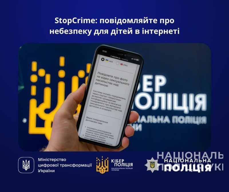 Тим часом, громадською організацією «Магнолія» за підтримки Міністерство цифрової трансформації України, Дія.Освіта та Департаменту кіберполіції Національної поліції України створено портал StopCrime для анонімних повідомлень про матеріали і злочини, пов’язані із сексуальним насильством над дітьми в інтернеті.