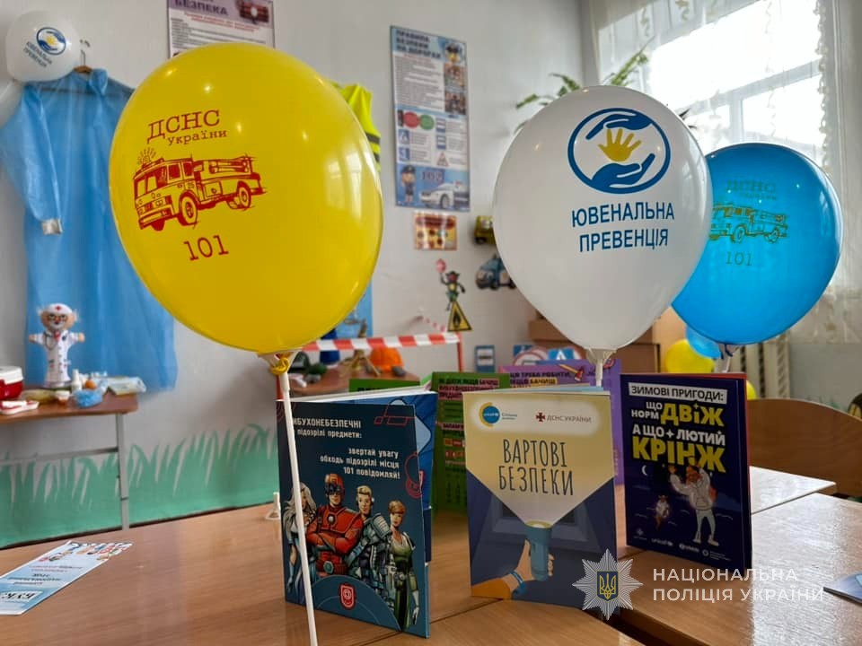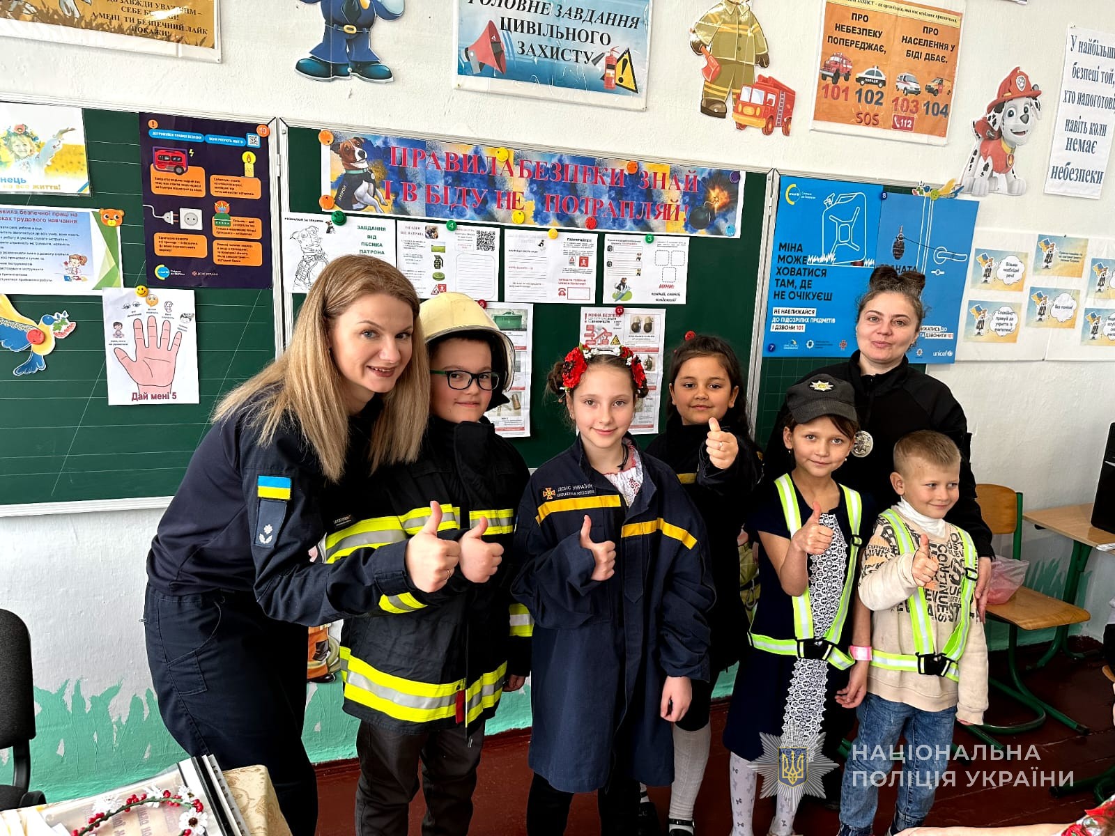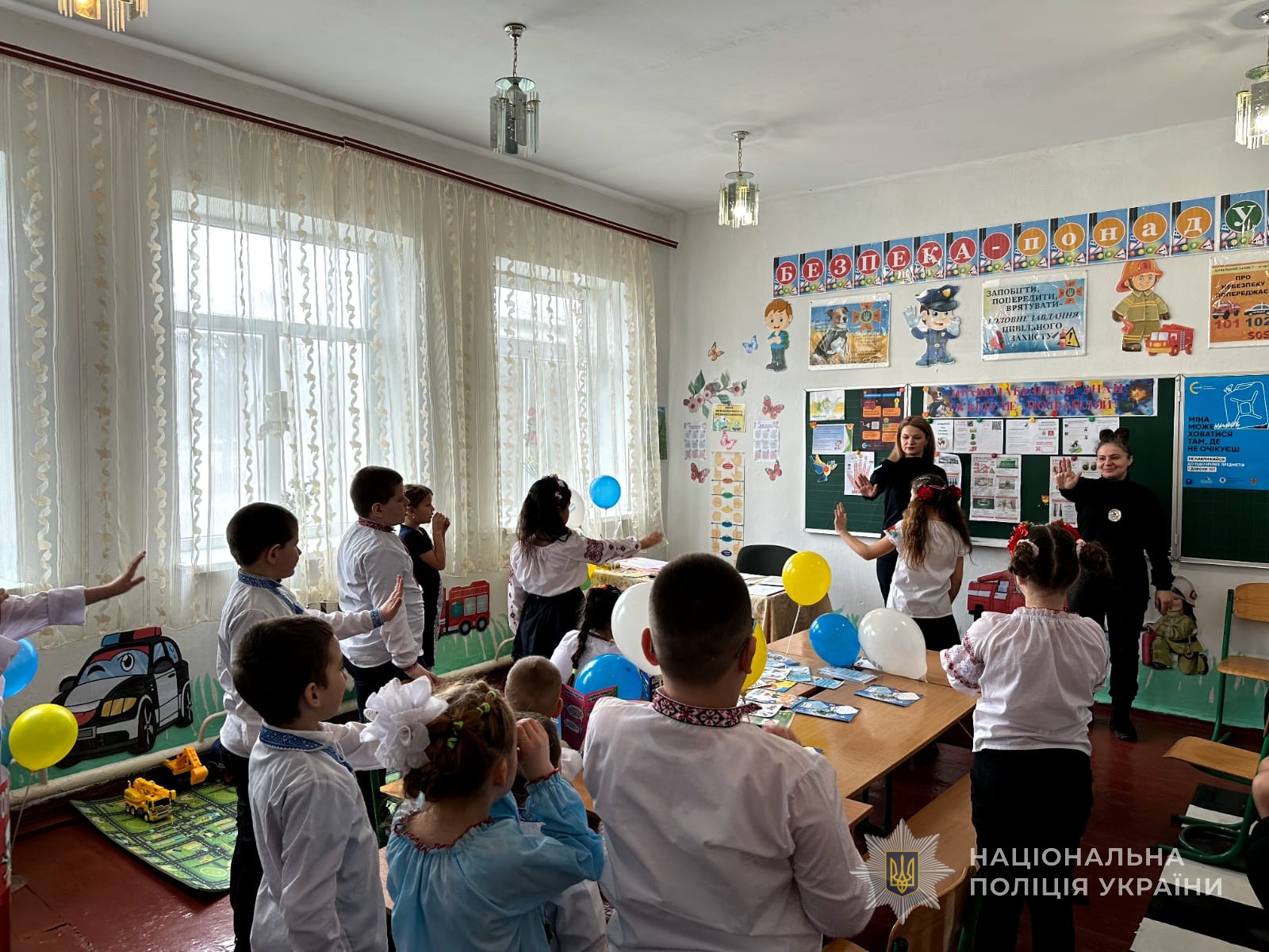Під час першого уроку безпеки поліцейські спільно з рятувальниками ознайомили дітей з тематичними стендами, інвентарем рятувальників, макетами побутової електротехніки, наочними матеріалами для проведення цікавих та корисних уроків. В ігровій формі правоохоронці проекзаменували школярів на знання номерів телефонів екстрених служб та алгоритму дій при оголошенні сигналу «Повітряна тривога».