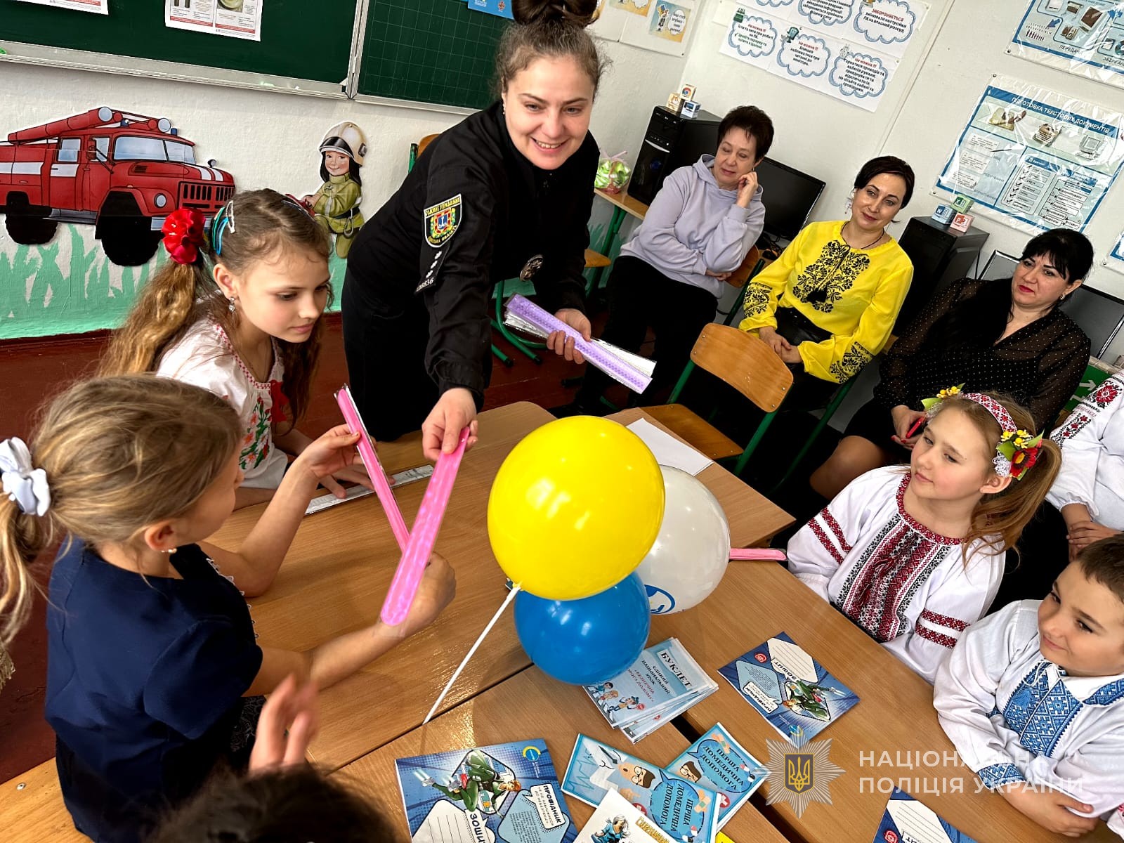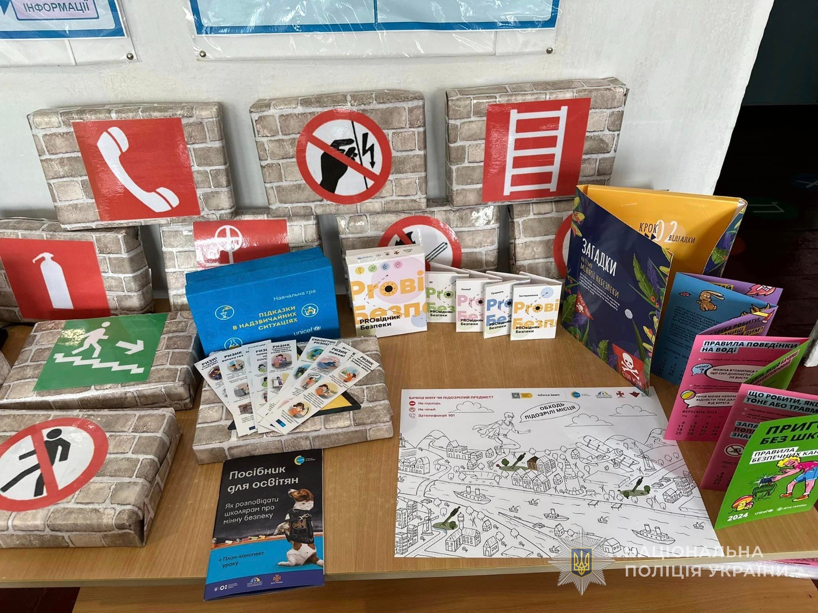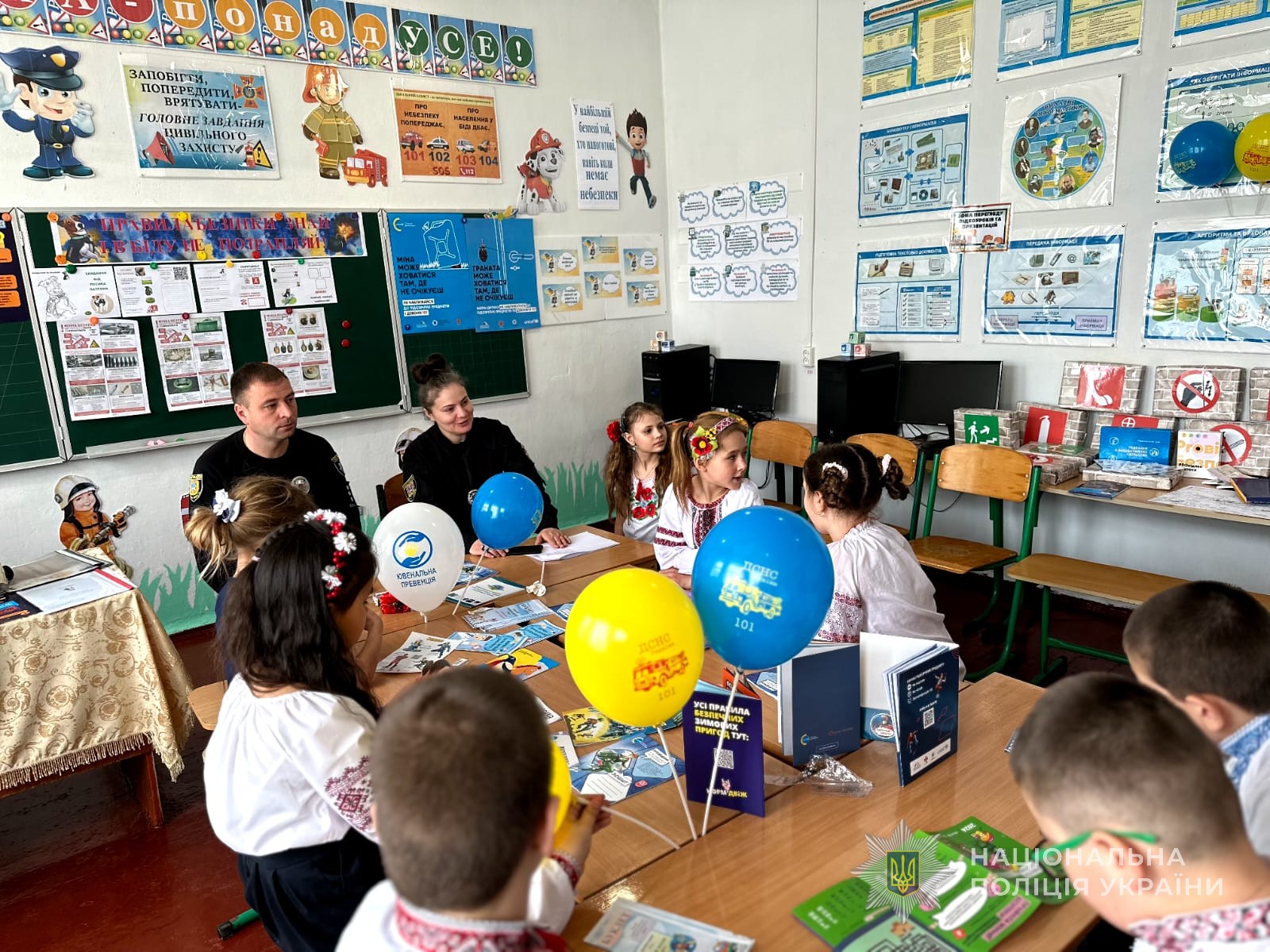 Під час першого уроку безпеки поліцейські спільно з рятувальниками ознайомили дітей з тематичними стендами, інвентарем рятувальників, макетами побутової електротехніки, наочними матеріалами для проведення цікавих та корисних уроків. В ігровій формі правоохоронці проекзаменували школярів на знання номерів телефонів екстрених служб та алгоритму дій при оголошенні сигналу «Повітряна тривога».