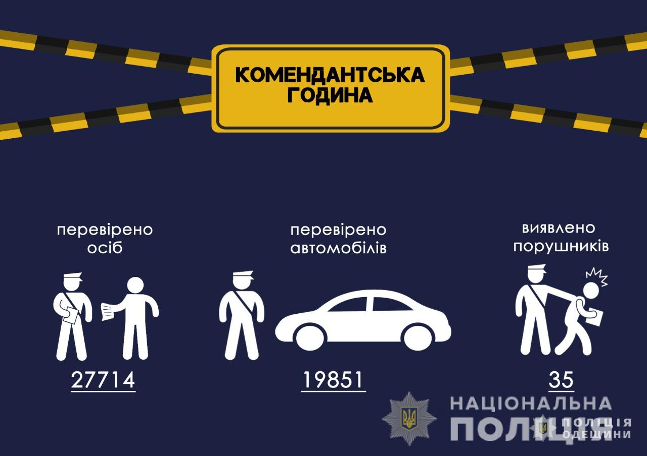 Також правоохоронці виявили 35 порушників комендантської години, яка встановлена в регіоні з 22.00 до 5.00.