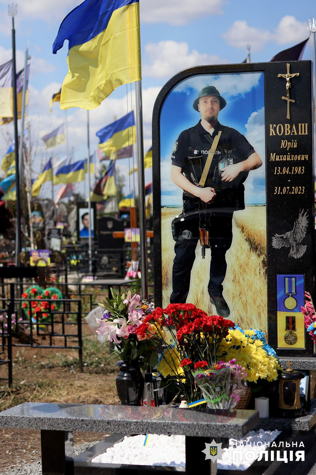 Минув рік, як Юрій вступив у небесний стрій захисників України. Поховали його в Одесі, де 17 років свого життя він віддав службі в правоохоронних органах. Сьогодні біля могили оперативника його рідні, друзі і товариші-поліцейські схилили голови у скорботній молитві, вшановуючи пам’ять Героя, до останнього подиху вірного присязі, даній своєму народові та державі.