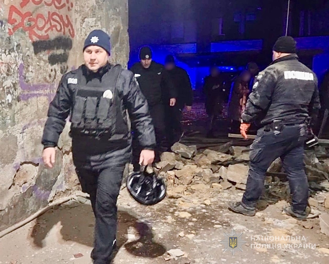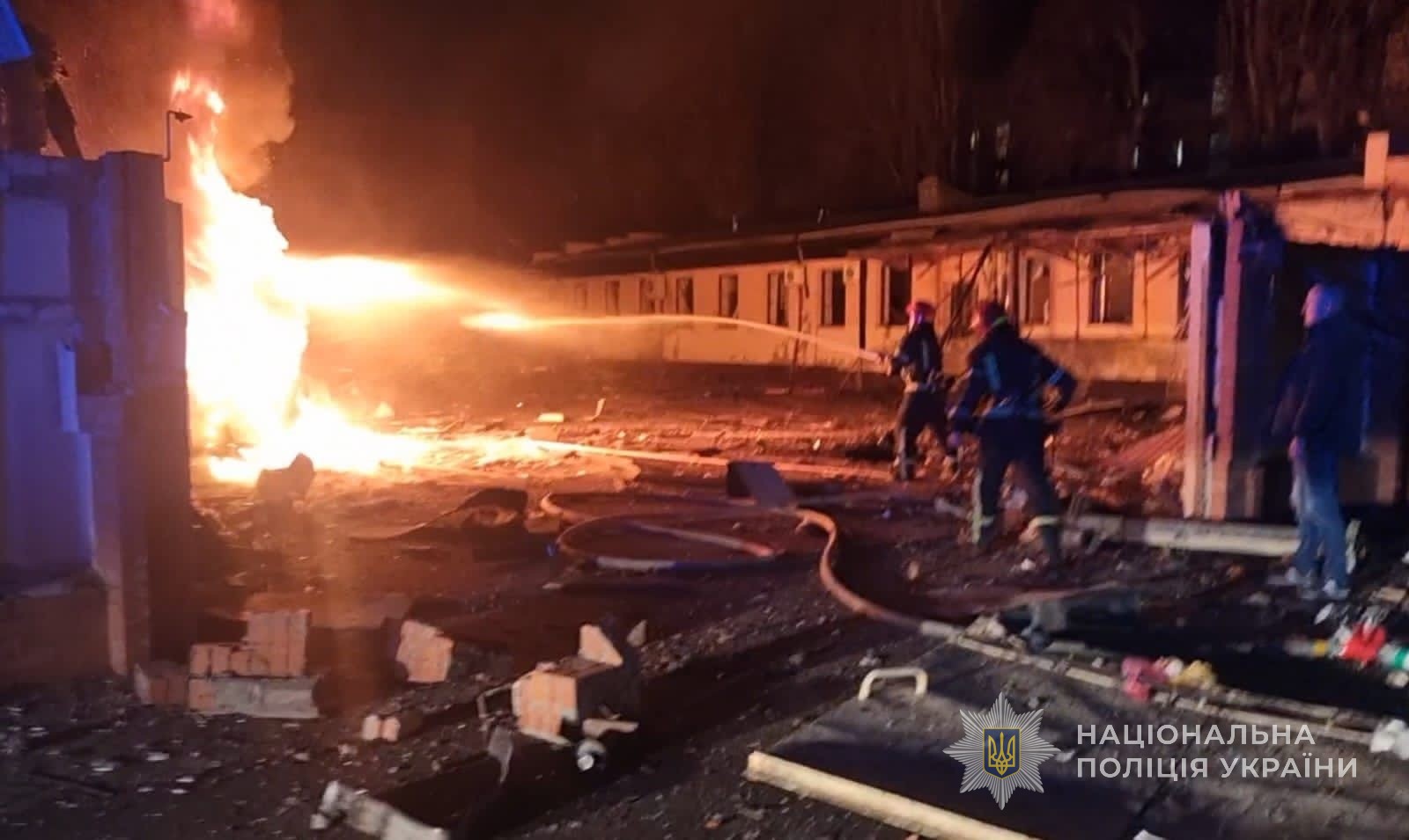 Поліцейські фіксують наслідки ворожої атаки, збирають докази військового злочину росії, опитують громадян, надають психологічну допомогу, забезпечують правопорядок.