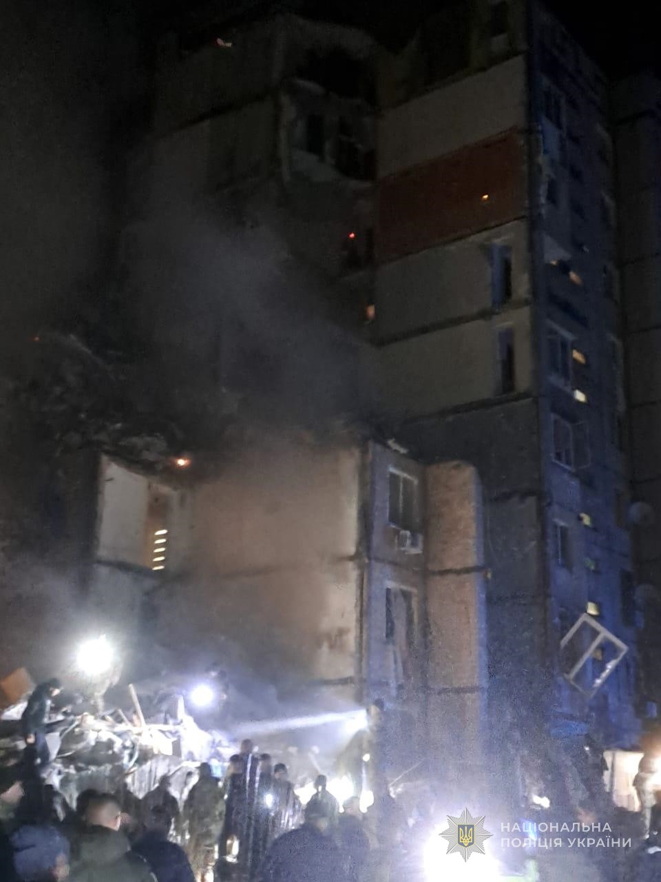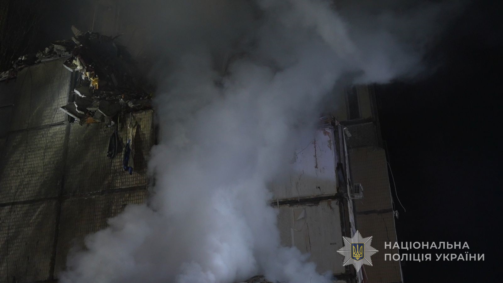 Поліцейські розбирають завали, надають необхідну допомогу громадянам, фіксують наслідки ворожої атаки, збирають докази військового злочину росії, забезпечують безпеку та правопорядок. З мешканцями будинку працюють психологи.