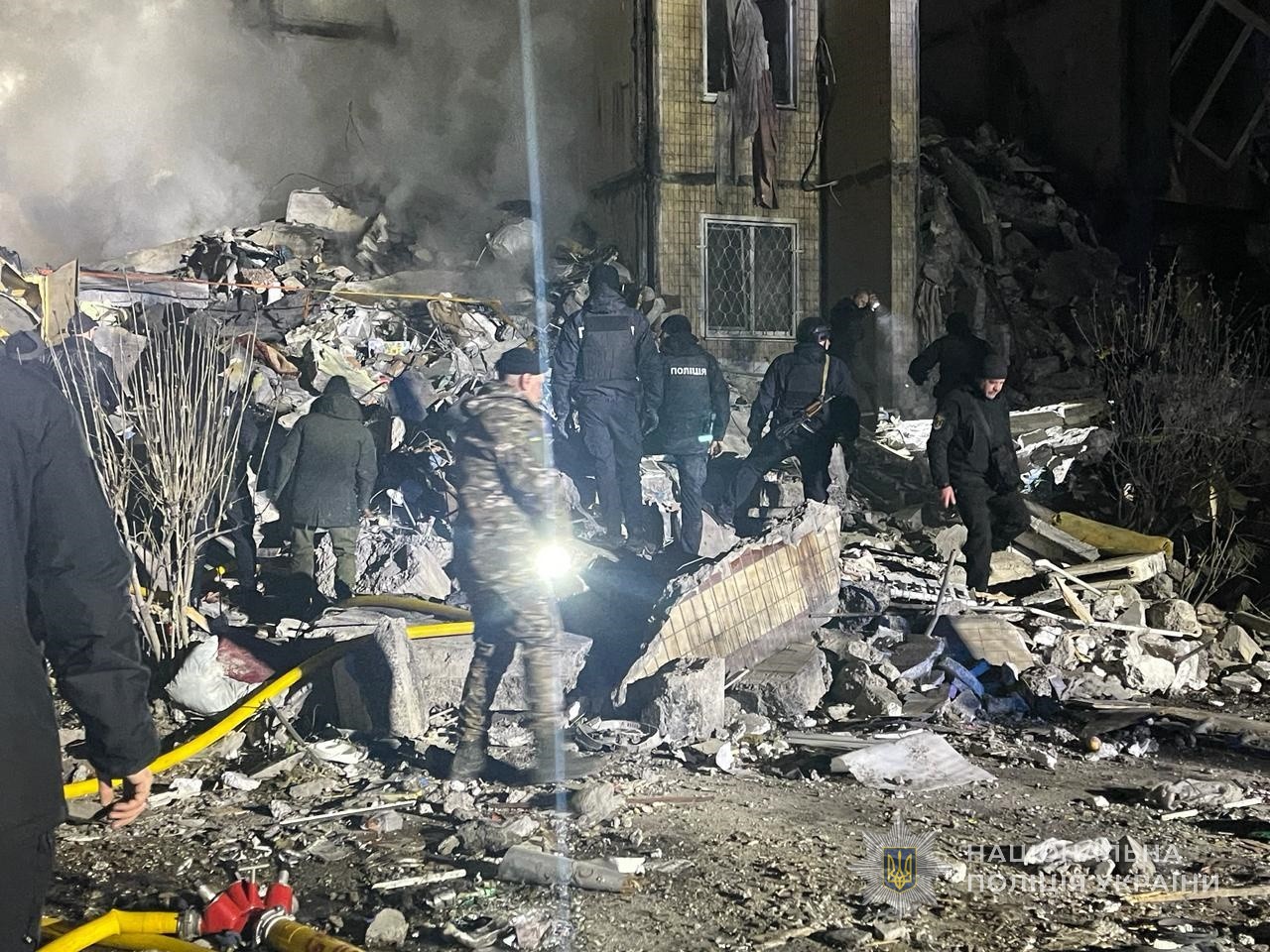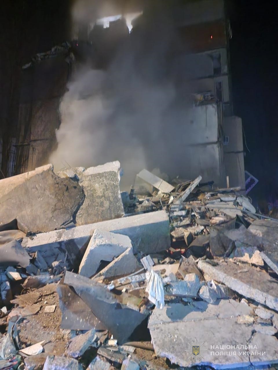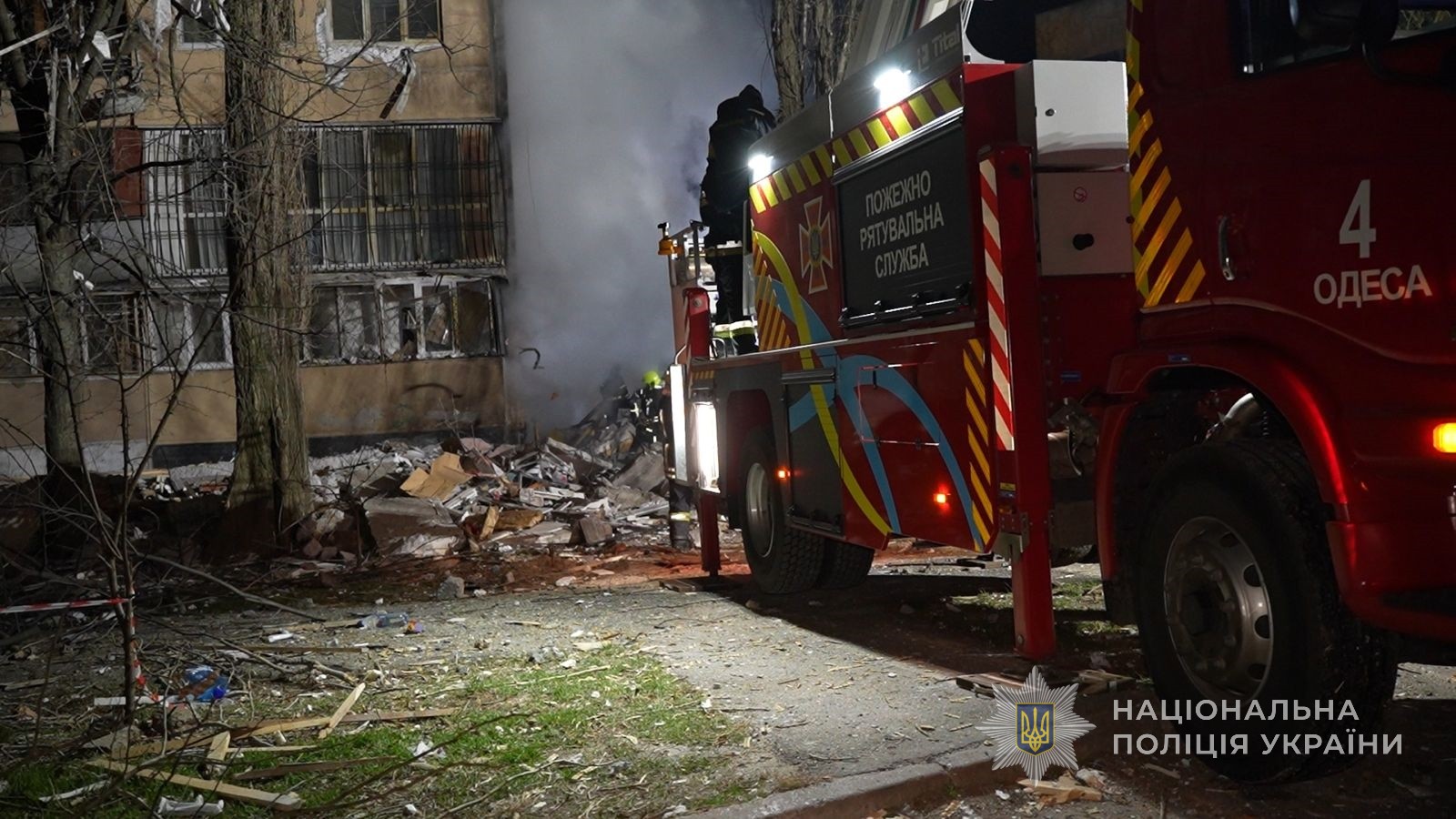 Вночі другого березня ворог вкотре підступно атакував Одесу дронами. Внаслідок атаки зруйновано вісім поверхів під’їзду багатоповерхівки. Під завалами люди.