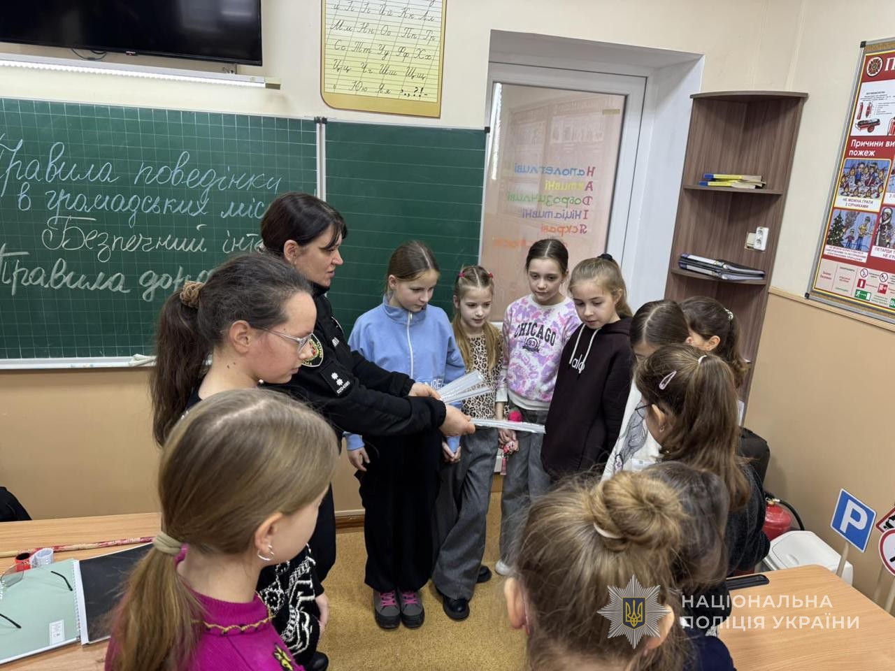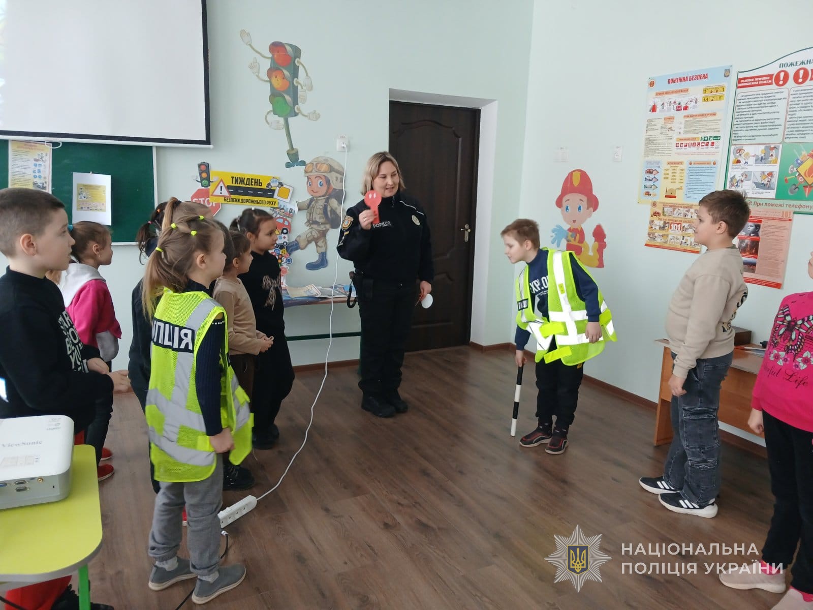Крім цього, дітям нагадали правила дорожнього руху: значення дорожніх знаків і жестів регулювальника, правила переходу дороги за наявності та відсутності світлофора, важливість позначати себе флікерами у темну пору доби. Поліцейські підкреслили, що безпека залежить не лише від водіїв, а й від дисциплінованості пішоходів.