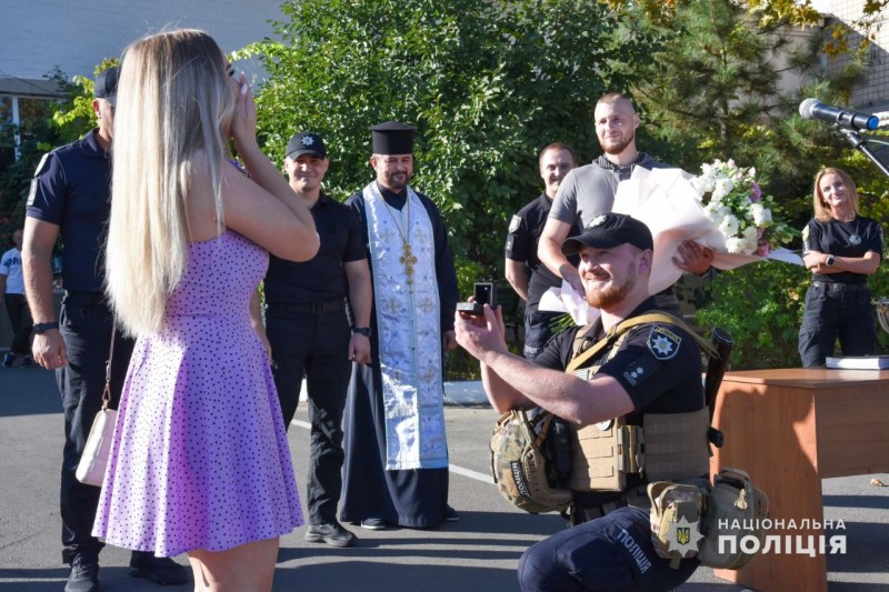 Після двомісячного перебування у складі зведеного загону на деокупованій території Херсонщини, перше, що зробив лейтенант поліції, повернувшись до рідної Одеси - на шикуванні покликав кохану дівчину заміж.