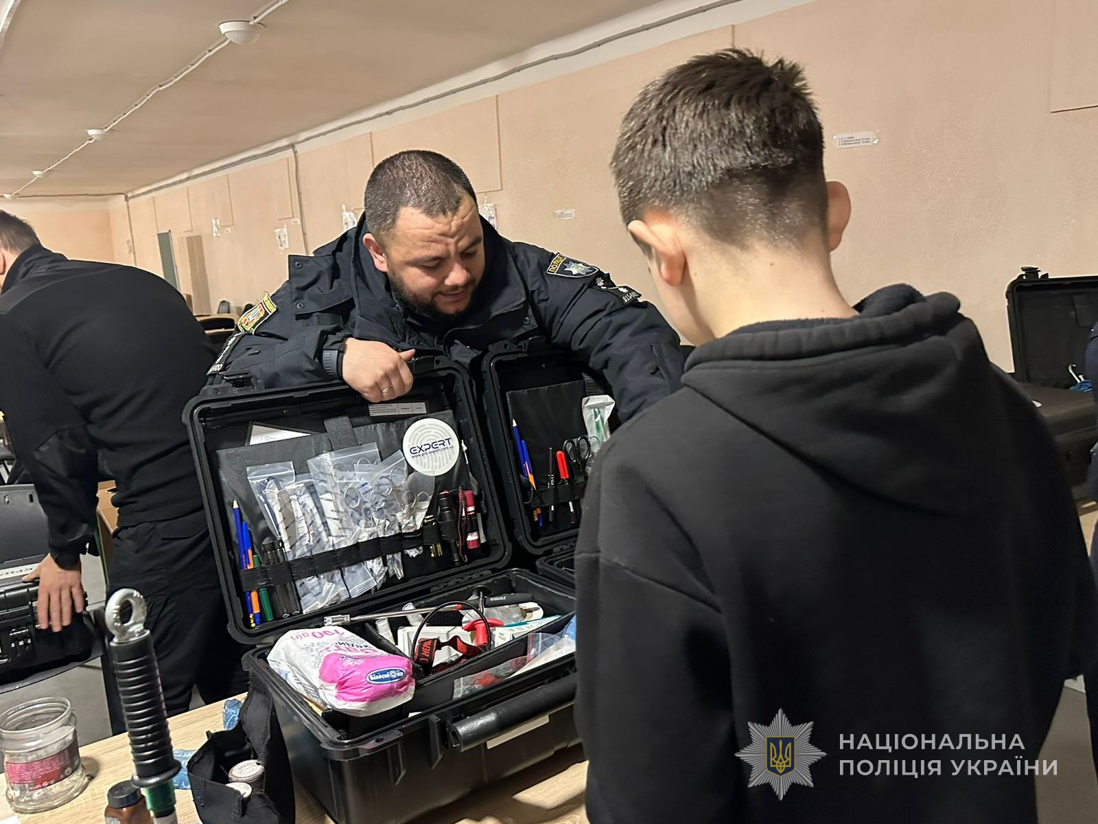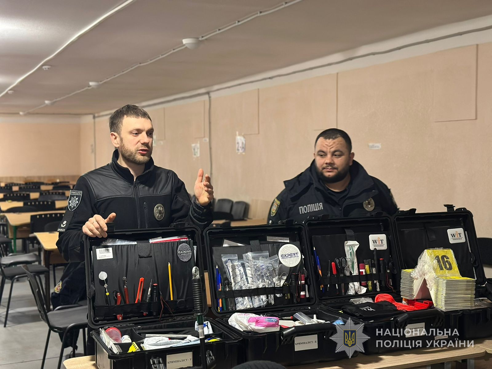 Особливу увагу було приділено технічному забезпеченню криміналістів. Учням продемонстрували криміналістичні валізи з обладнанням, необхідним для виявлення, зняття та фіксації різних відбитків, фотографування й документування місця події.