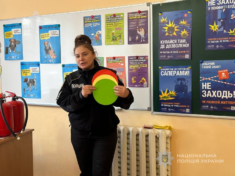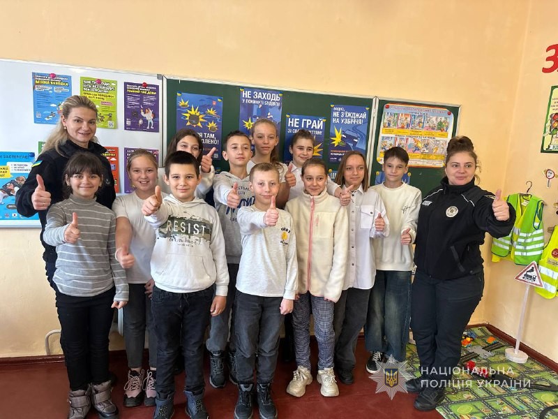 Поліцейські показали дітям дорожні знаки та повторили з ними, як правильно переходити проїзну частину, змоделювавши аварійні ситуації. А фахівці Державної служби з надзвичайних ситуацій показали учням, як виглядають вибухонебезпечні предмети, і повторили з ними правила поведінки при їх виявленні.