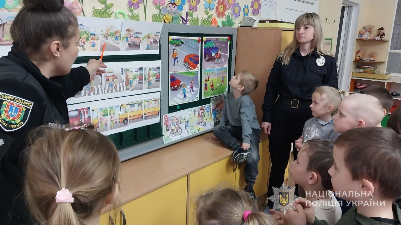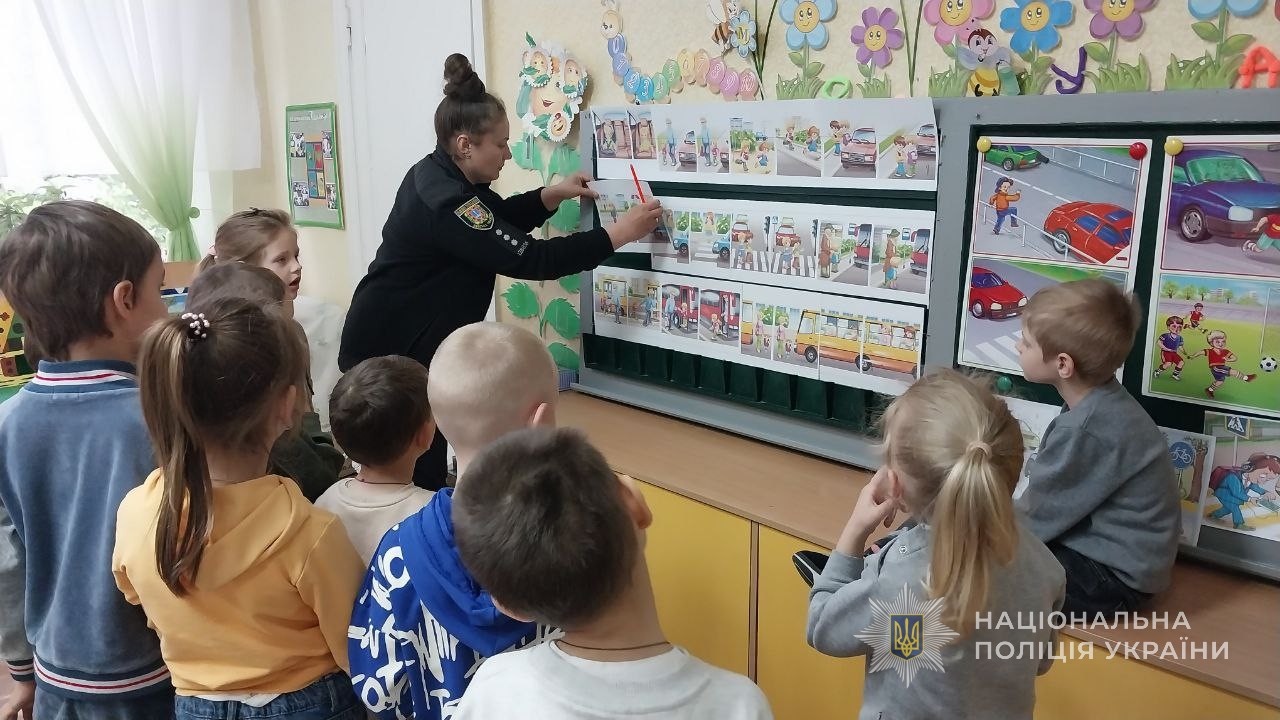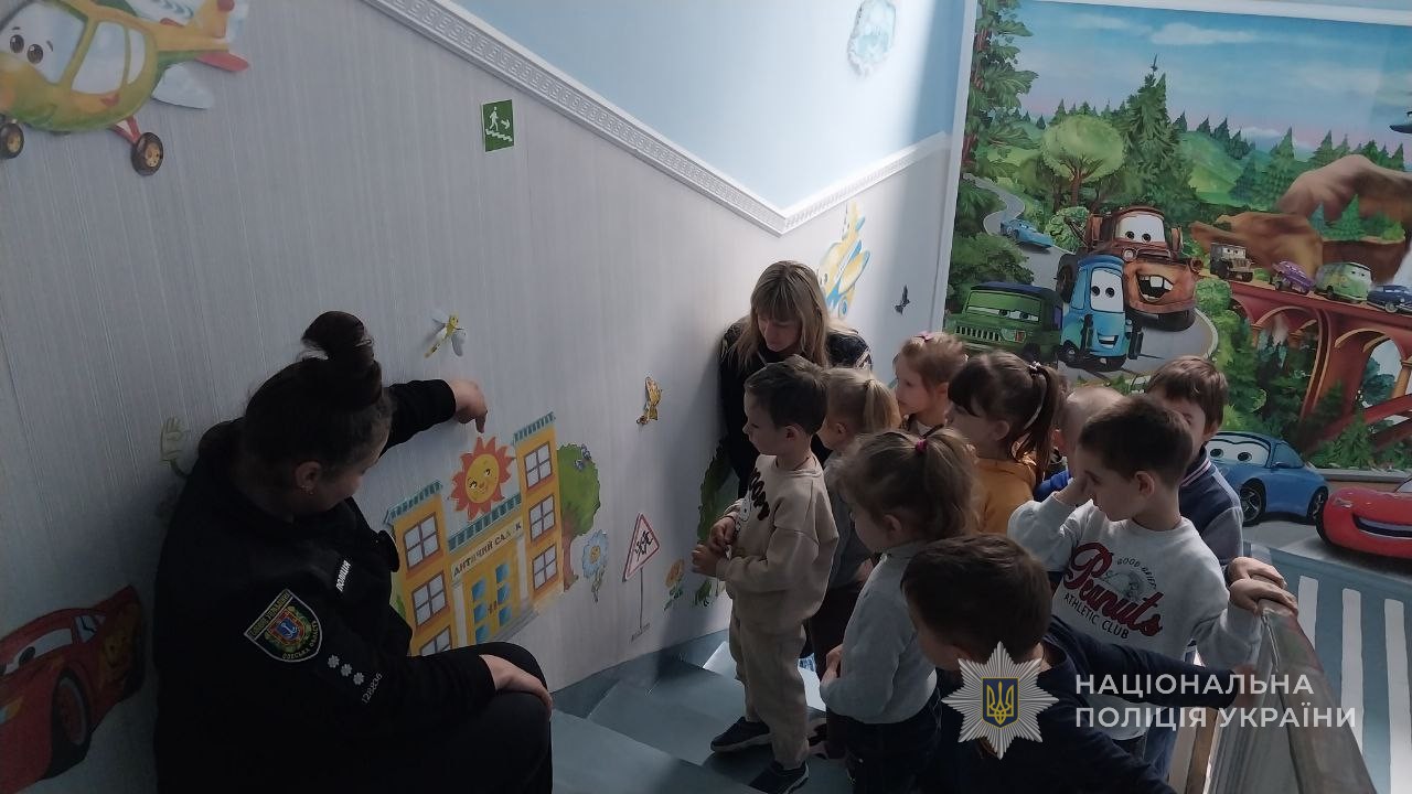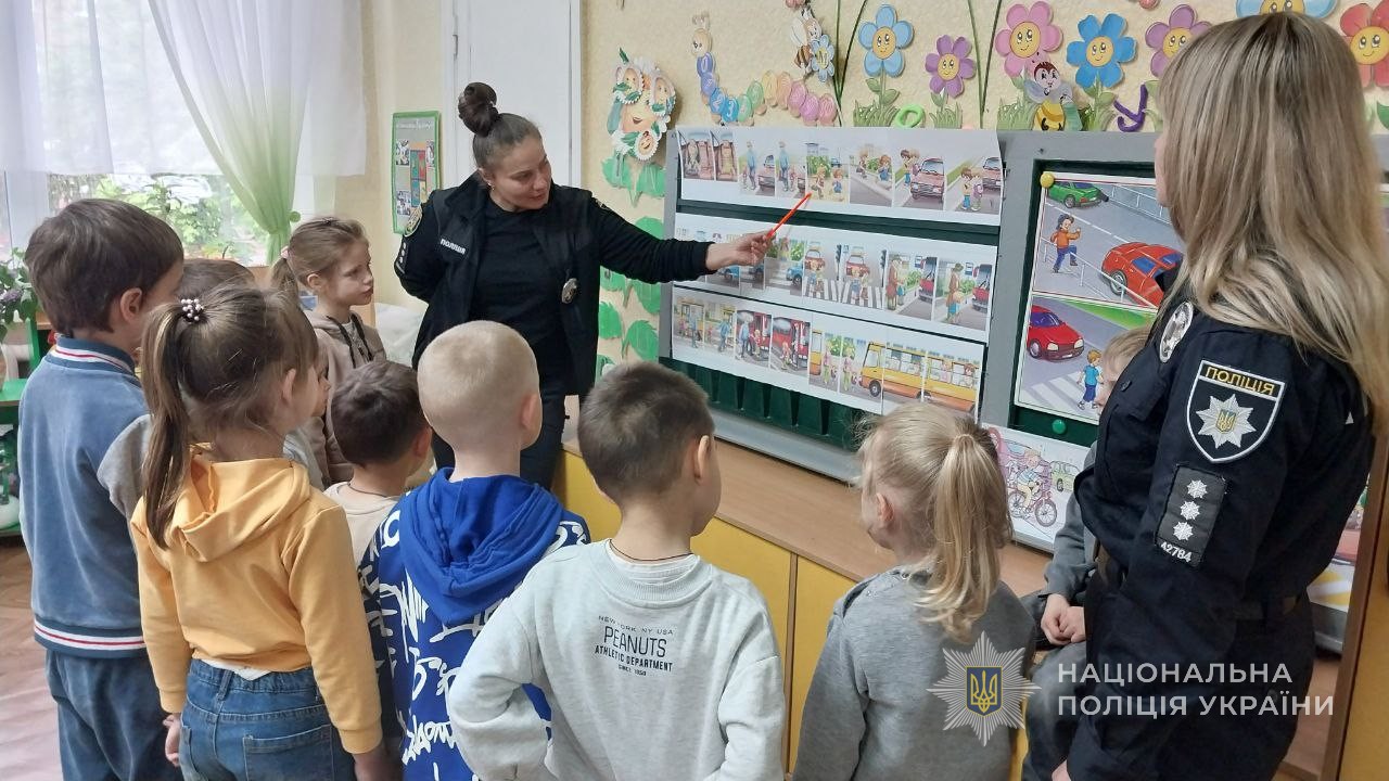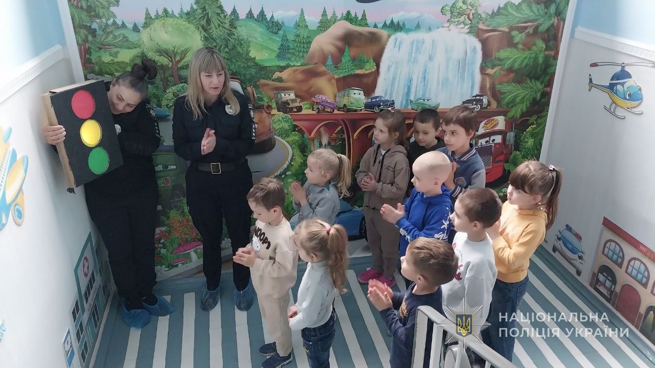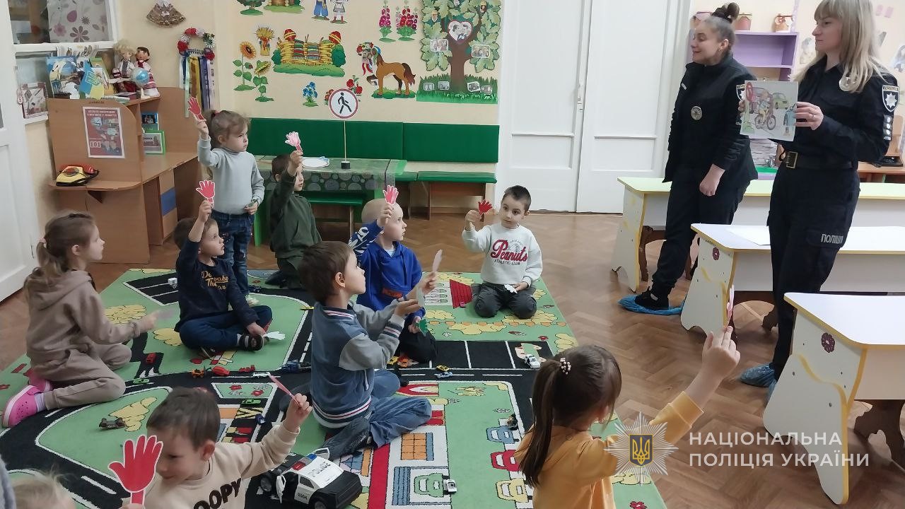Під час зустрічі з дошкільнятами ювенальні поліцейські Ліна Огороднюк та Ольга Чебан розповіли їм про дорожні знаки, розмітку, як і де саме перетинати проїзну частину дороги, та показали повчальний мультфільм, у якому його герої правильно реагували на різні сигнали світлофора. Спільний перегляд стрічки завершився обговоренням ситуаційних картинок. Діти оцінювали правильність дій тваринок та людей зображених на світлинах.