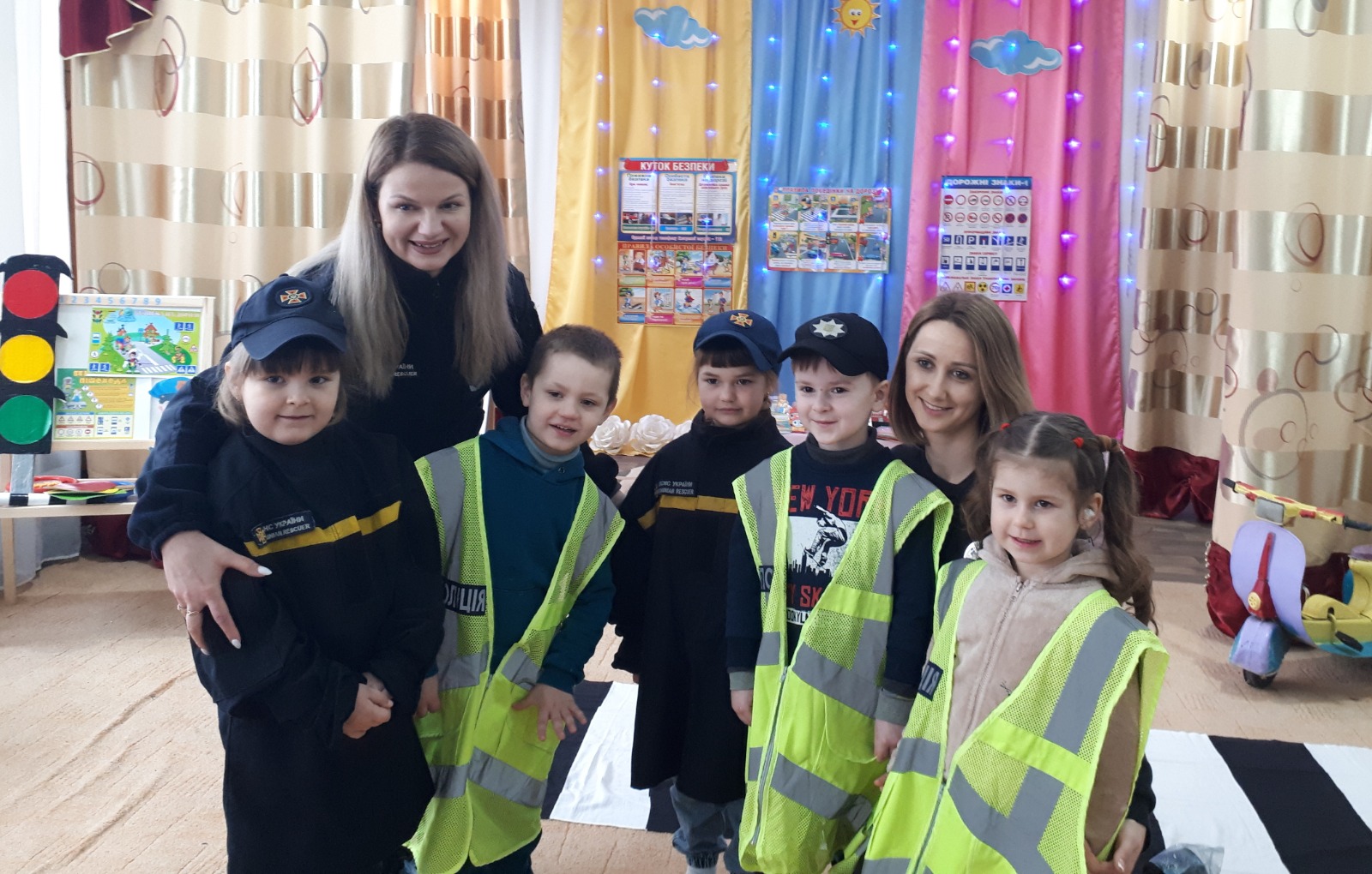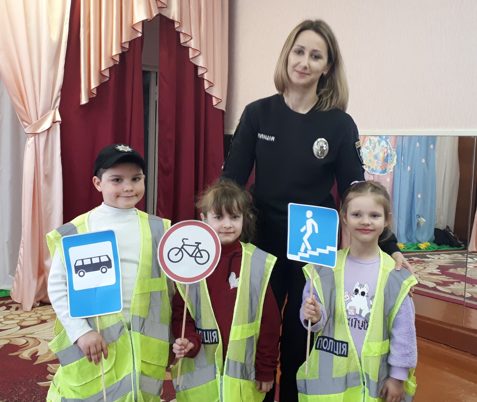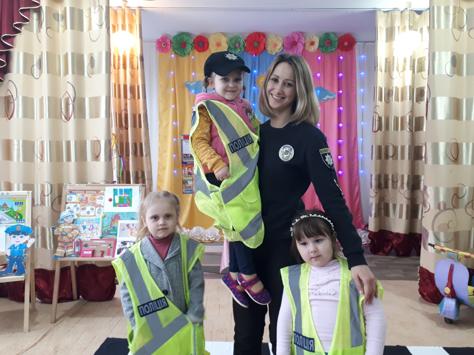 Ювенальна поліцейська Катерина Нігрецкул нагадала вихованцям дитсадків правила поведінки у громадських місцях, які, як виявилося, вони добре знають. Граючись разом із гостею, малюки повторили алгоритм дій пішохода за різних сигналів світлофора, а потім продемонстрували, як треба правильно переходити дорогу, на якій немає помічника-світлофора. Хлопчики та дівчатка із задоволенням відповідали на питання поліцейської про те, як поводитися з незнайомцями на вулиці, у ліфті, за якими номерами телефонів дзвонити, якщо вони виявили пожежу, поранилися чи потрапили в іншу небезпечну ситуацію.