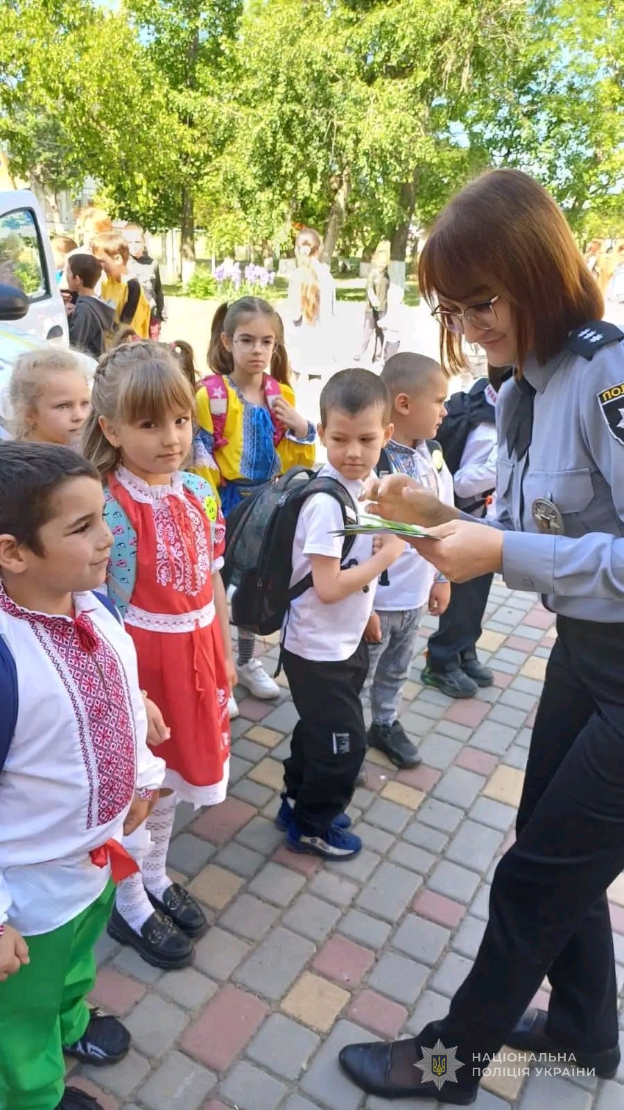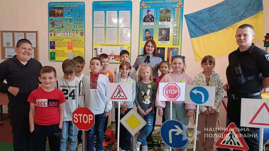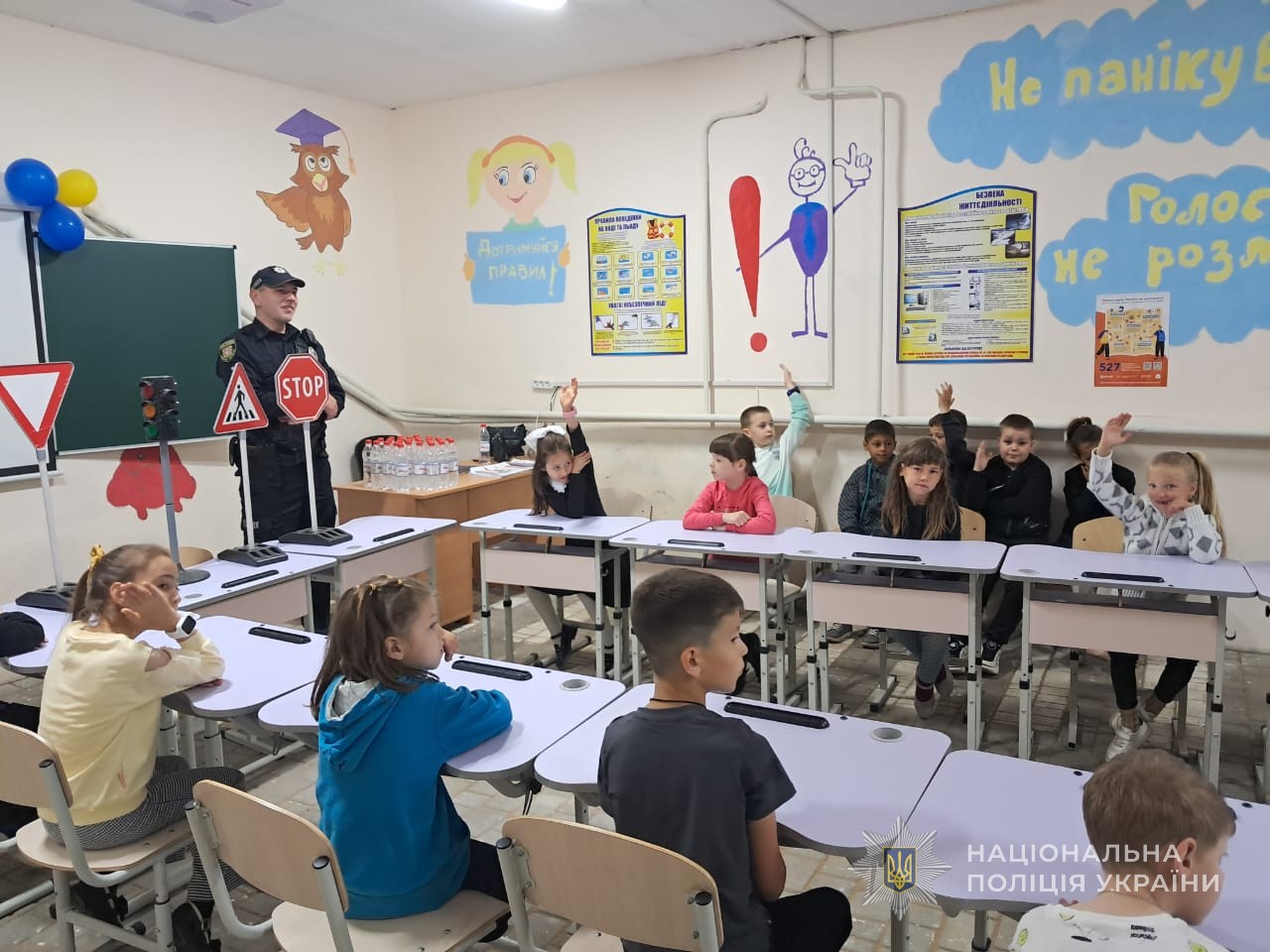 Правоохоронці приділили увагу темі правил дорожнього руху, повторили з дітьми дорожні знаки, закликали перетинати проїзну частину дороги виключно по пішохідних переходах, не перебігати вулицю перед транспортними засобами, що наближаються, у разі відсутності тротуару рухатися по узбіччю назустріч транспортному потоку, а у темну пору доби користуватися світловідбивачами або ліхтариками.