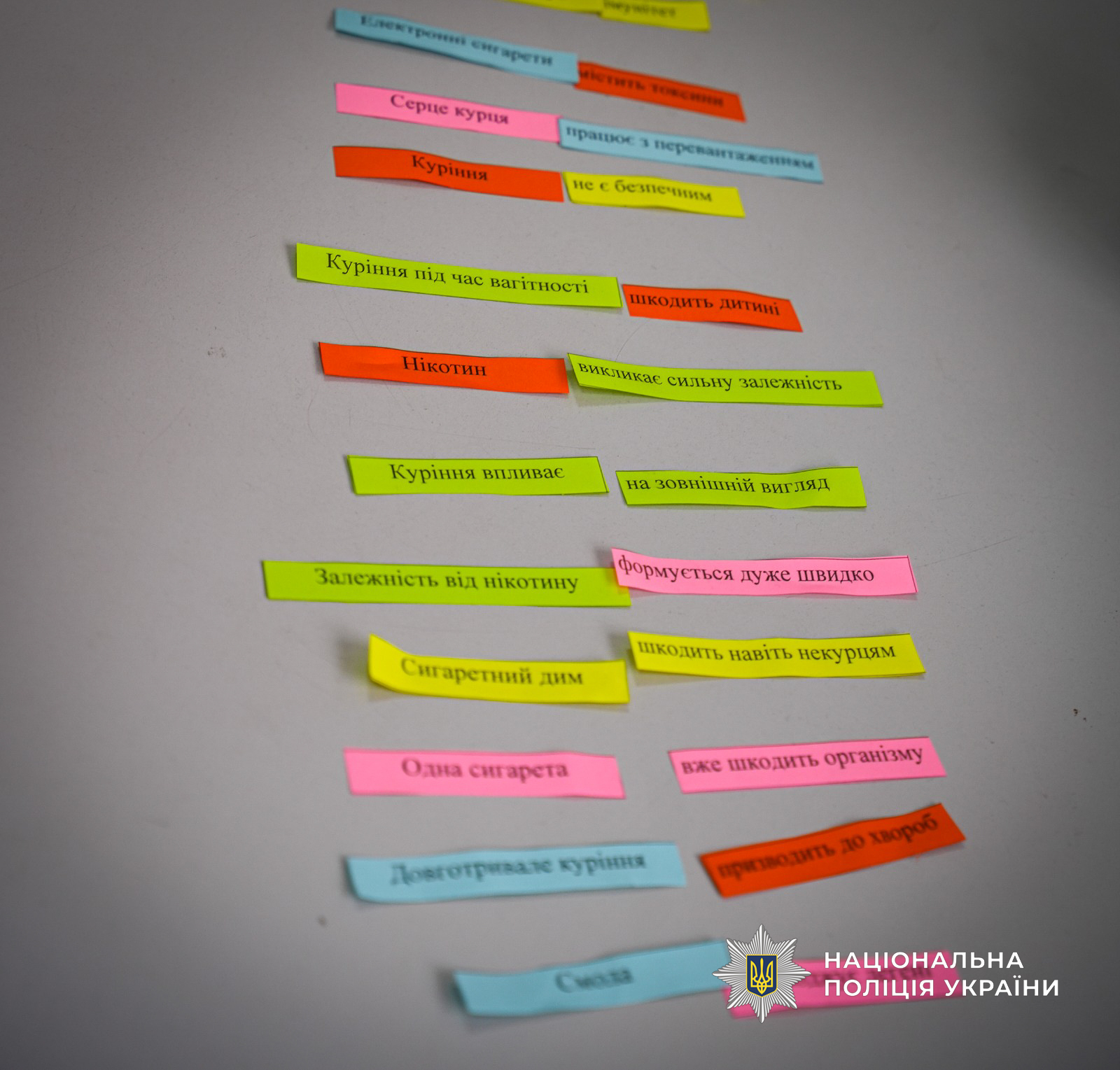 Школярі не тільки слухають лекції, а виконують цікаві завдання, аналізують життєві ситуації та знаходять правильні рішення. Так вони перевіряють власні знання й відкривають нові факти про нікотин та його негативний вплив на організм.