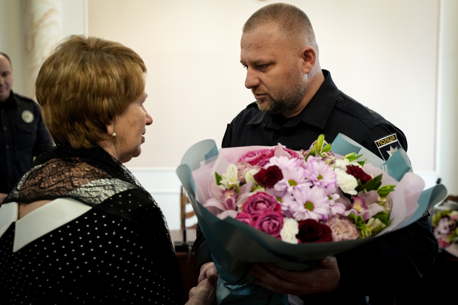 – Кожен з полеглих назавжди залишиться в історії та нашій пам’яті прикладом патріотизму, мужності та самовідданості. Вічна слава героям, - з такими словами звернулися поліцейські, представники духовенства та волонтери, які прийшли привітати штормівців, до матері загиблого Олександра Лисоконя – Лідії Миколаївни, яка була присутня на заході.