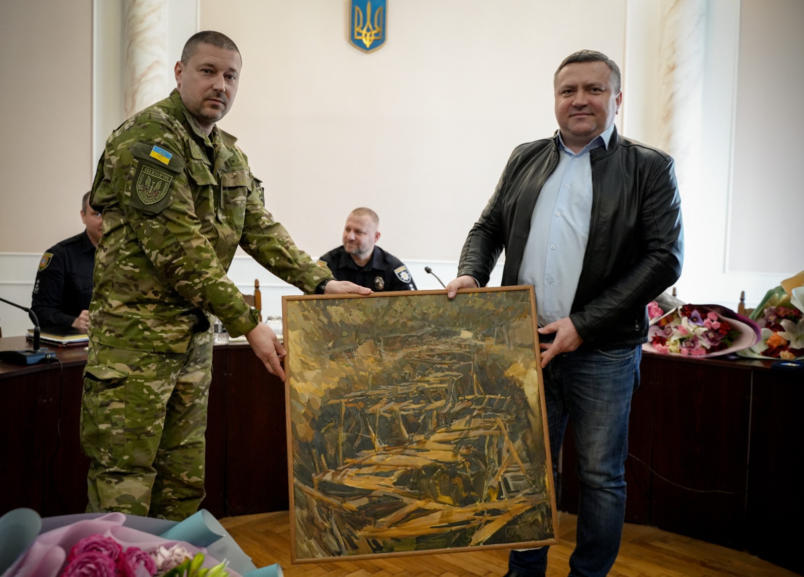 У свою чергу волонтери подарували бійцям картину «На все воля твоя» і наголосили, що вже багато років не перестають дякувати штормівцям за те, що воїни борються за нашу країну та оберігають наш край.