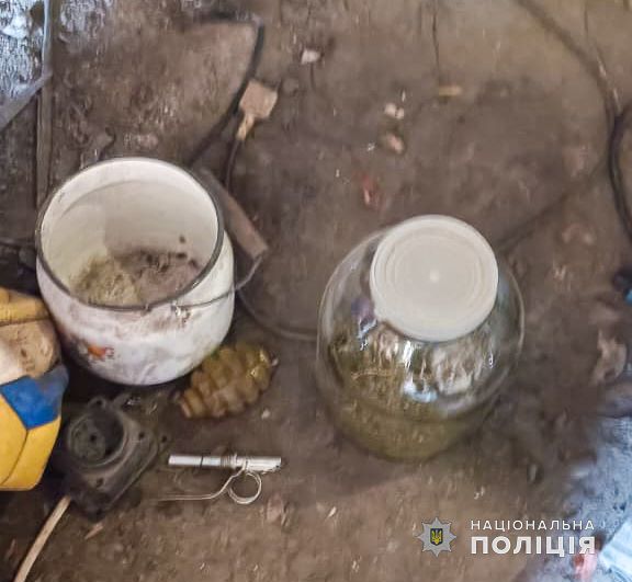 Володіючи інформацією щодо наявності у чоловіка небезпечних предметів, правоохоронці в рамках провадження, розпочатого за ч. 1 ст. 263 Кримінального кодексу України, провели за місцем мешкання фігуранта санкціонований обшук. З оселі чоловіка вилучили корпус гранати Ф-1, два запали УЗРГМ-1, тротилову шашку, 32 набої 9х18 міліметрів, а також банку із рослинною речовиною, схожою на канабіс.