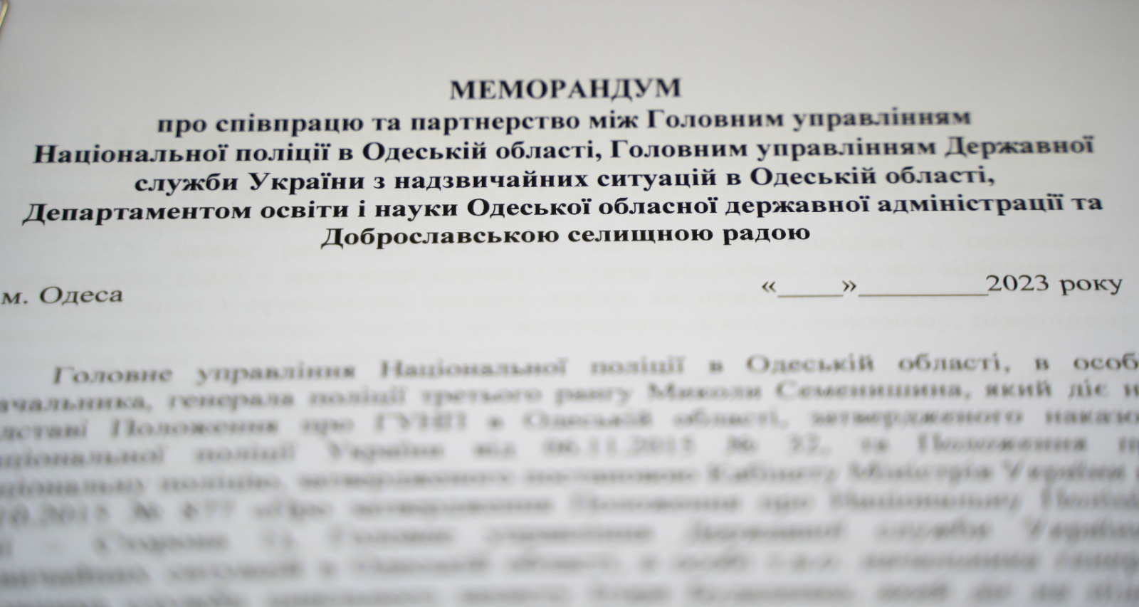 Одещина долучилася до проєкту «Спеціаліст із безпеки в освітньому середовищі», підписавши 2022-го та на початку 2023-го року меморандуми про співпрацю та взаємодію із Савранською, Вигодянською, Подільською, Нерубайською та Окнянською об’єднаними територіальними громадами.