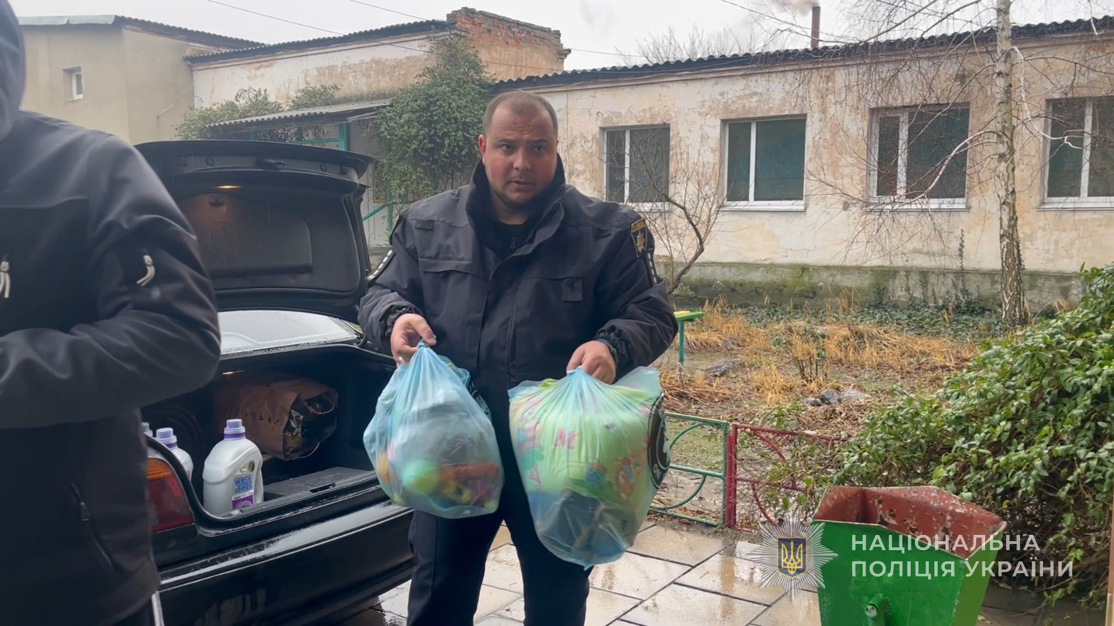 Правоохоронці зібрали необхідні речі, одяг, іграшки та смаколики, з якими навідалися до малечі.