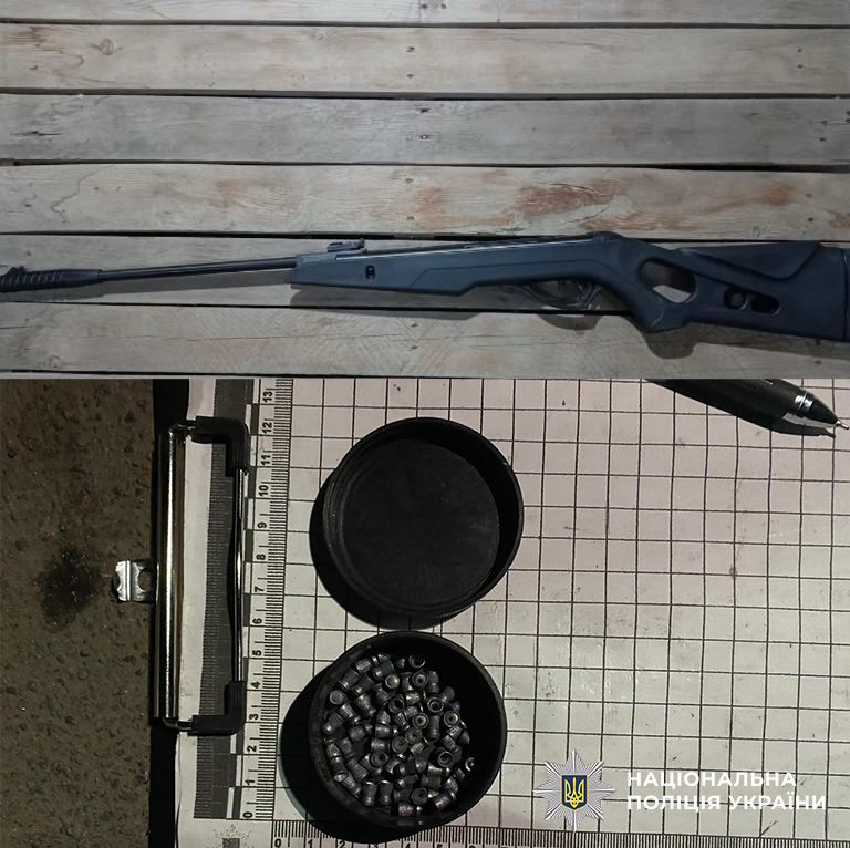 Правоохоронці оперативно розшукали і затримали його у процесуальному порядку. Громадянин пояснив, що має неприязні стосунки з потерпілим, тож, їхавши з товаришами в автомобілі та побачивши його, вирішив налякати пострілом із пневматичної зброї, яка у нього була з собою. Поліцейські вилучили її і скерували на експертне дослідження.