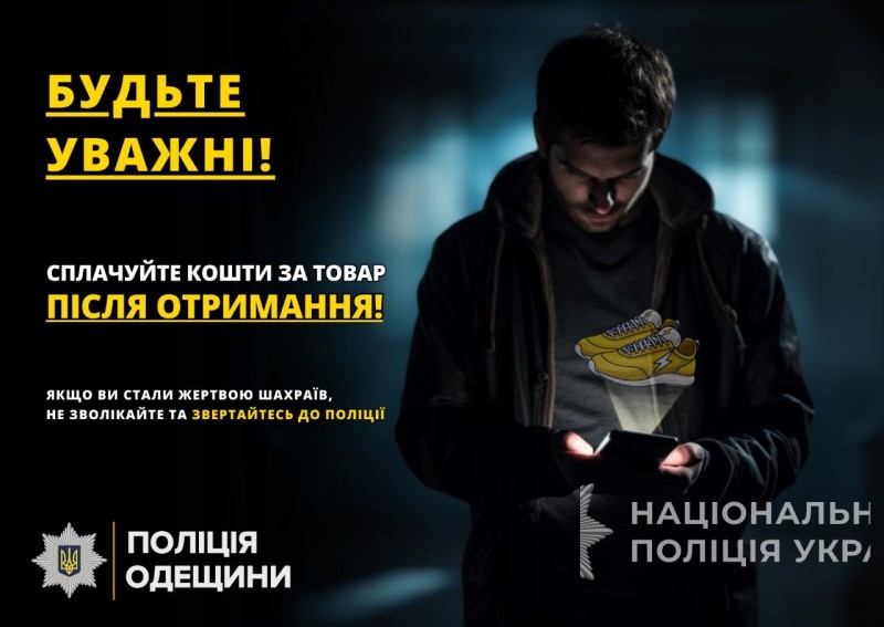 Шахрайські дії зловмисника задокументували та припинили співробітники відділення поліції № 1 Одеського районного управління поліції № 1. Правоохоронці встановили, що чоловік на одному з популярних сайтів розмістив оголошення про продаж кросівок вартістю 500 гривень, яких не мав. Впродовж трьох тижнів «товаром» зацікавились двоє чоловіків та жінка. При спілкуванні з потенційними покупцями зловмисник зазначав їм, що продає кросівки на умові повної передоплати, а щойно отримував на рахунок кошти, переставав виходити на зв’язок з замовниками та блокував їх. Не дочекавшись обіцяного взуття, потерпілі звернулись до поліції.
