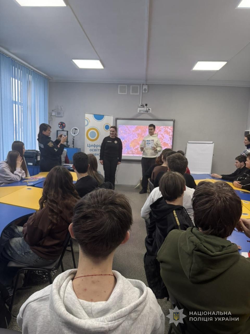 Також поліцейські пояснили підліткам, чому важливо уникати участі у протиправних діях, зокрема під впливом провокацій в інтернеті. Розповіли про небезпеку насильства, зокрема цькування, навчили реагувати на конфліктні ситуації та нагадали, що у разі небезпеки необхідно звертатися до дорослих.