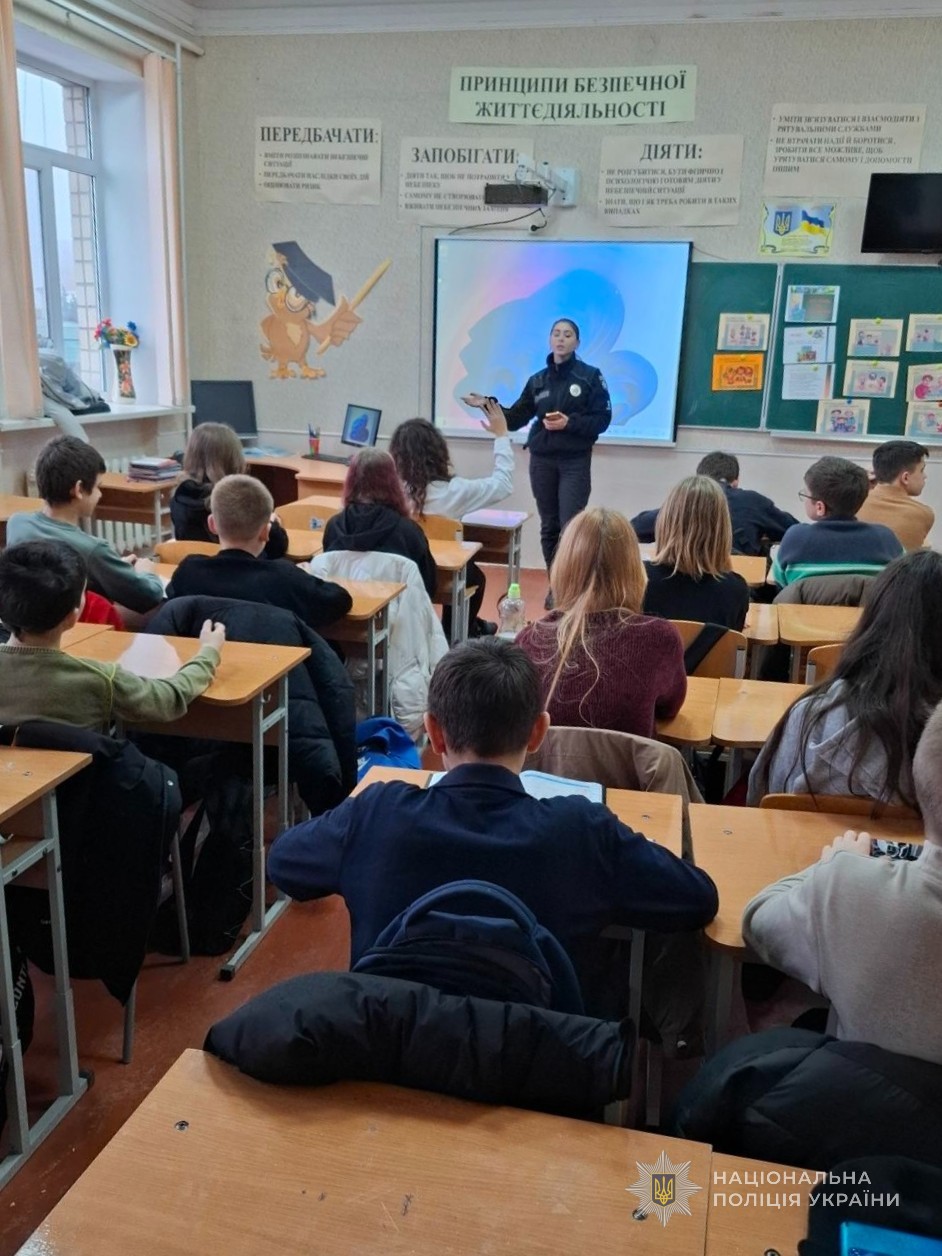 Під час занять поліцейські приділили увагу мінній безпеці. Учням розповіли про види вибухонебезпечних предметів та алгоритм дій у разі їх виявлення, наголошуючи: торкатися та переміщувати такі предмети заборонено.
