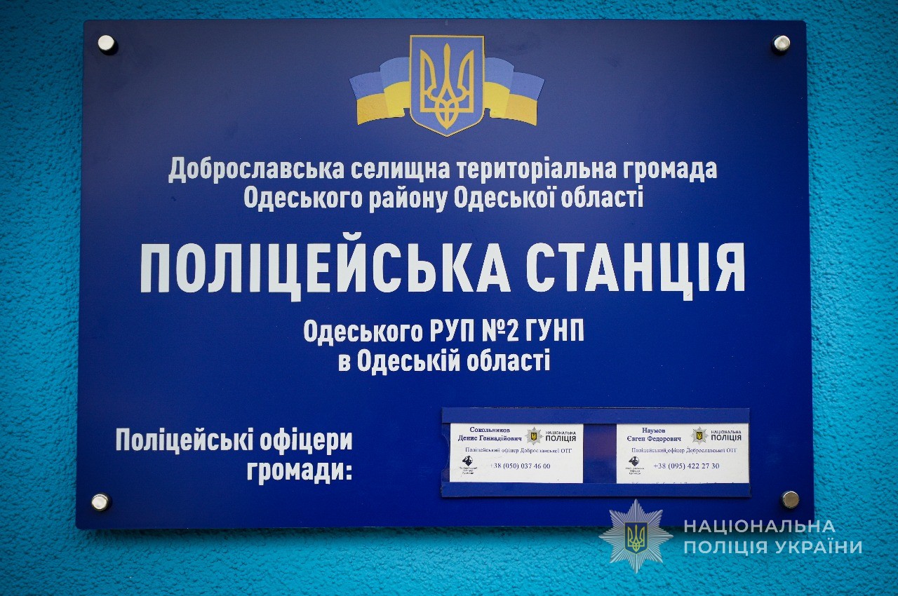 До відома громадян: поліцейська станція розташована за адресою: Одеський район, селище Доброслав, вул. Київська, 77. Зв’язатися з поліцейськими офіцерами громади можна за робочими телефонами: (095) 42 22 730 – капітан поліції Наумов Євген Федорович; (050) 037 46 00 – капітан поліції Сокольников Денис Геннадійович.