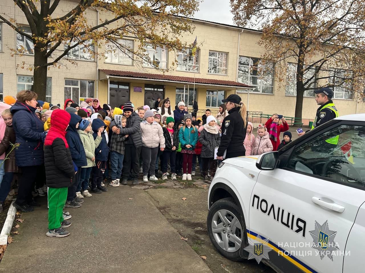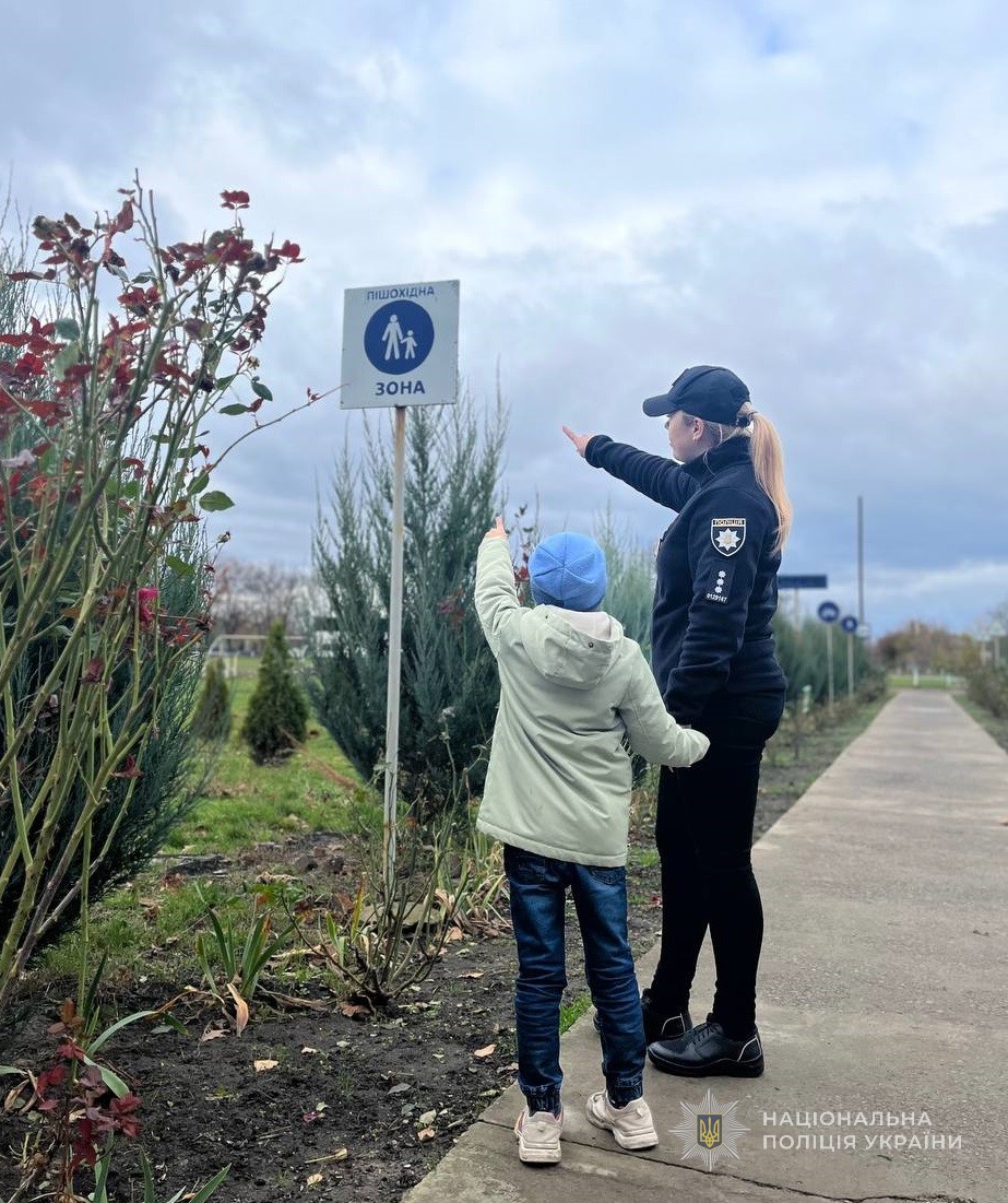 Розмову з учнями Савранського ліцею поліцейські групи реагування патрульної поліції Олександр Кульчицький та Іван Осадчук разом із ювенальною поліцейською Анною Кудрею провели на пришкільній території, облаштованій дорожніми знаками та розміткою. Переконавшись у тому, що школярі правильно відповідають на питання імпровізованої вікторини, правоохоронці закликали їх не ігнорувати правила дорожнього руху та подарували флікери зі світлоповертальною поверхнею, щоб юні пішоходи прикріпили їх на одяг та були помітними у темряві.