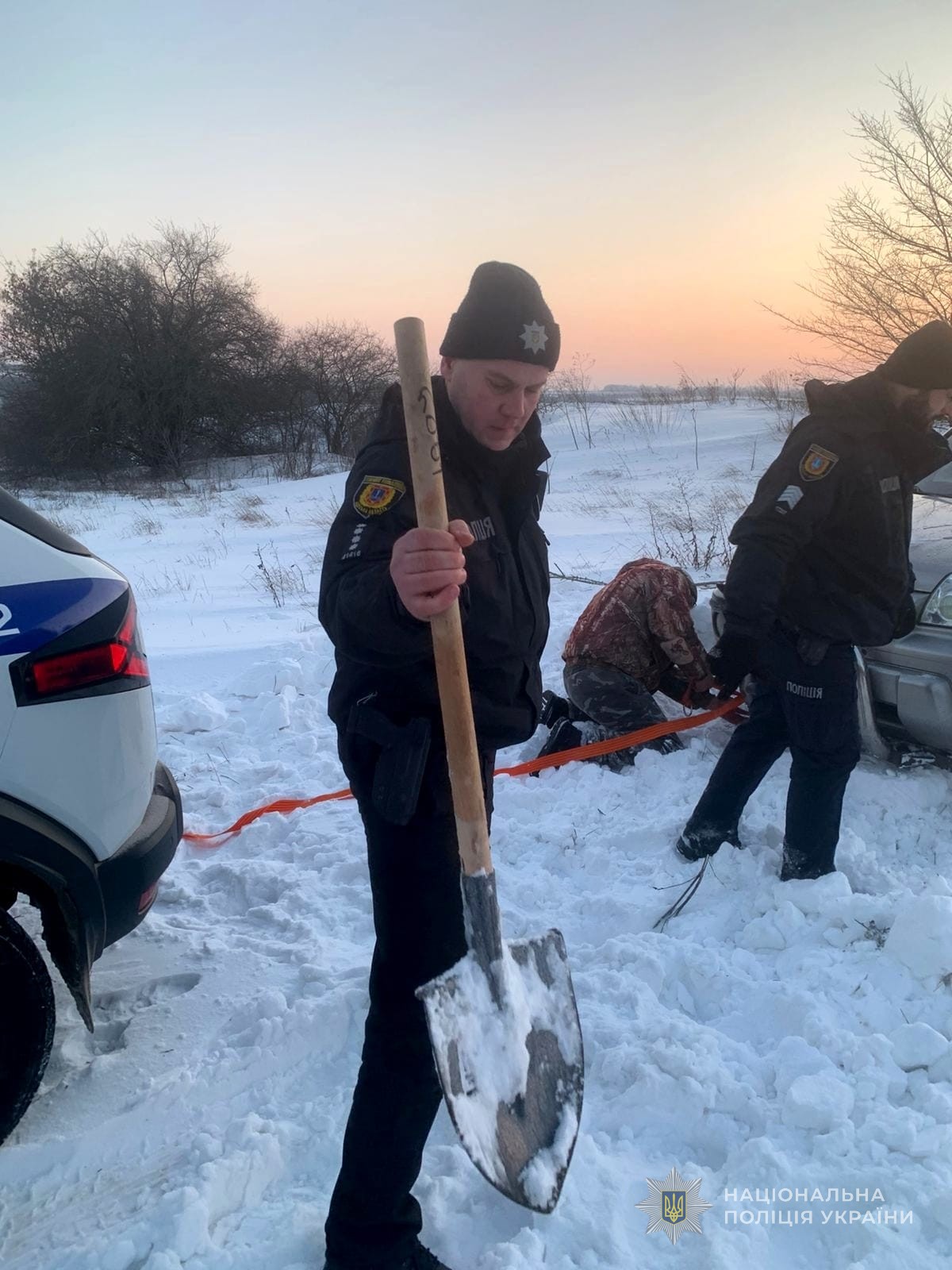У Подільському районі Одещини поліцейські продовжують надавати допомогу водіям, які стали заручниками негоди