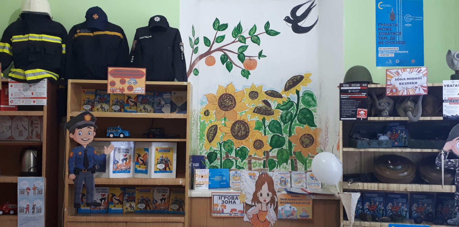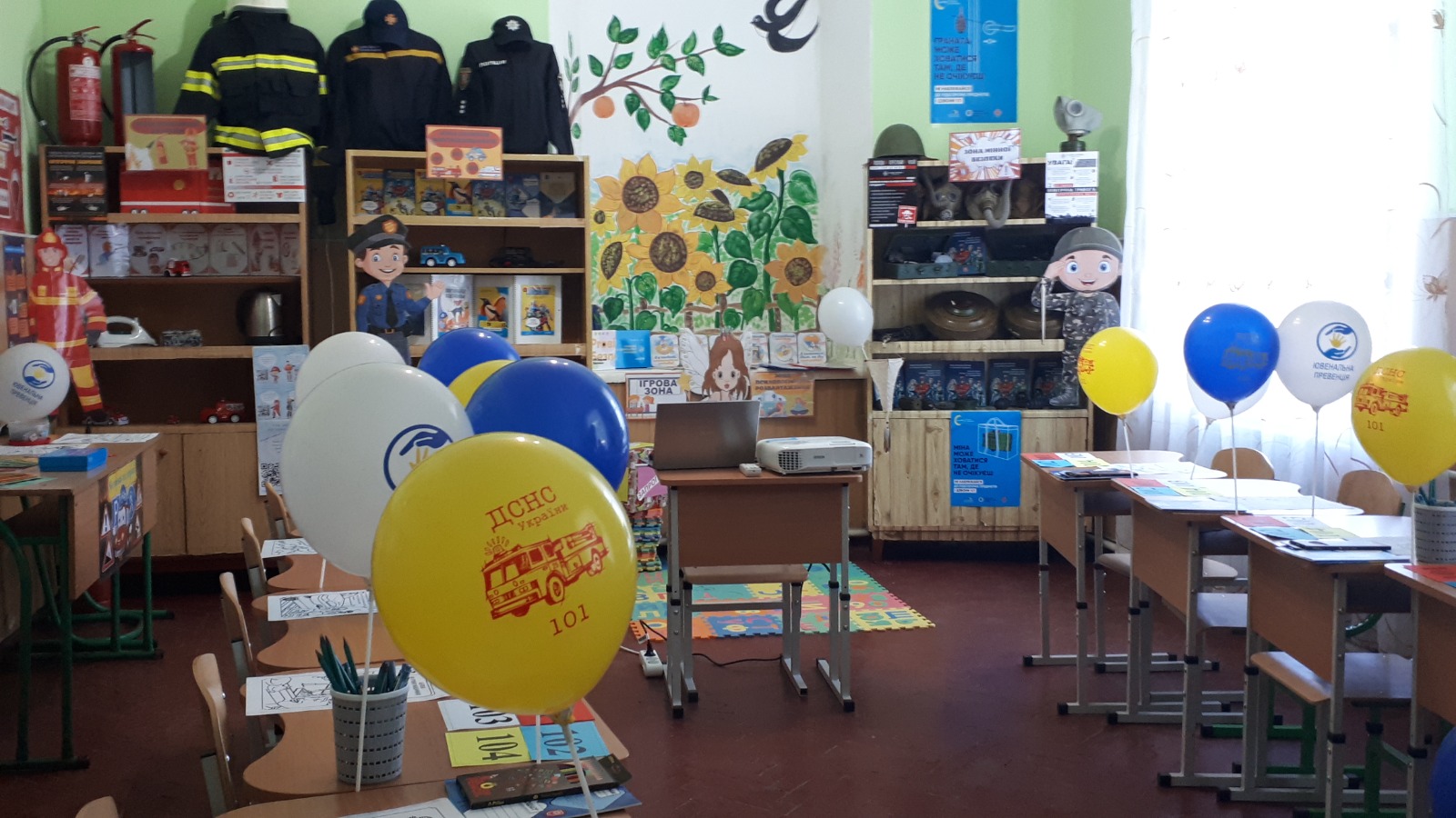 Педагоги, правоохоронці та рятувальники ретельно продумали зонування простору класної кімнати, розмістивши на стендах муляжі небезпечних предметів, макети обладнання пожежників, уніформу, медичні аптечки, облаштували куточок для відпочинку і психологічного розвантаження, підготували брошури й відеоматеріали з корисними безпековими порадами на всі випадки життя.