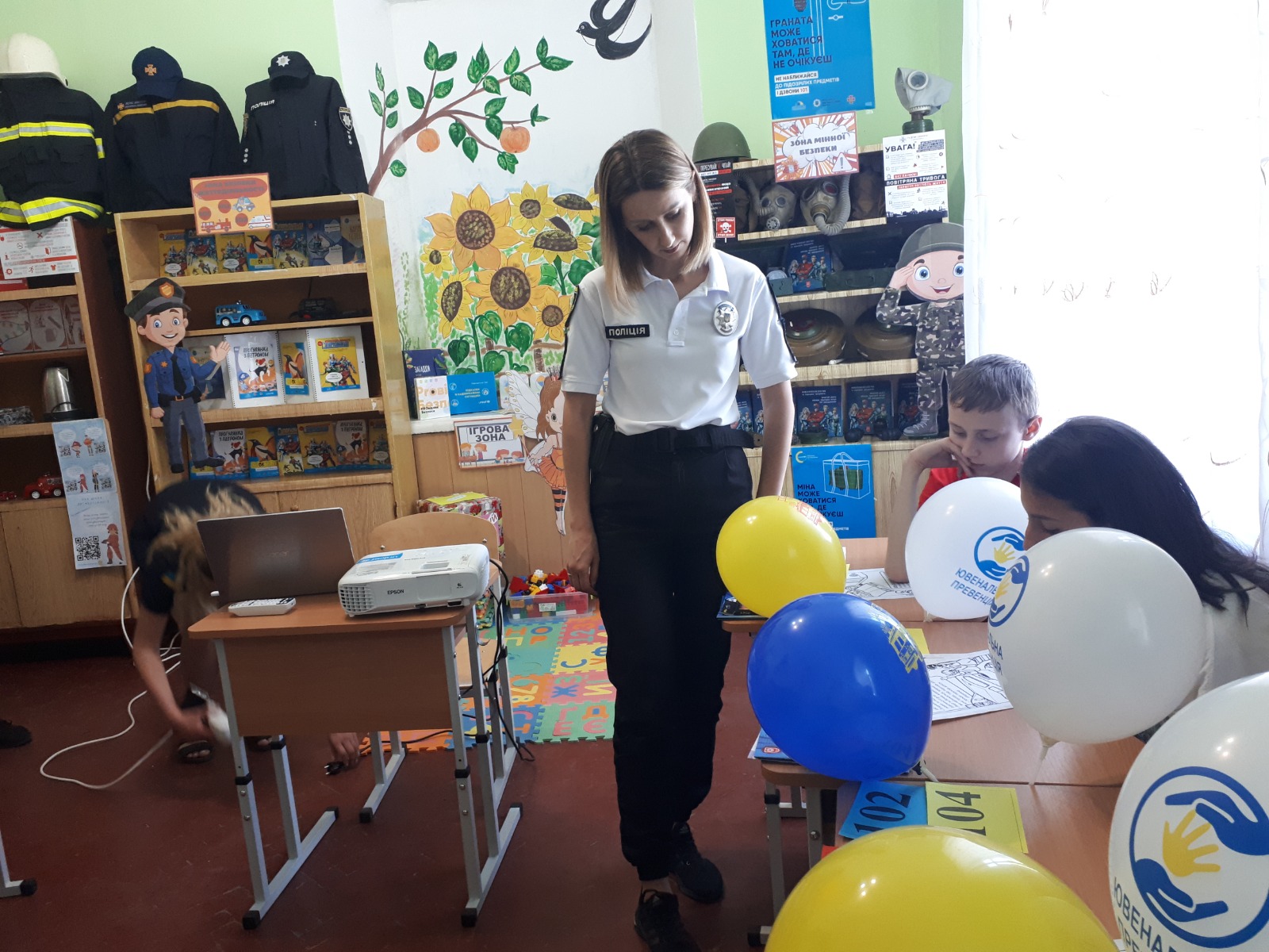 Першим відвідувачам поліцейська й рятувальниця в ігровій формі пригадали правила загальної безпеки, розповіли про пожежну безпеку та ознайомили зі способами надання долікарської допомоги. Окремо поговорили про правила безпеки під час відпочинку у лісах та на водоймах, як поводитися з незнайомцями, як діяти при сигналі повітряної тривоги та при виявленні небезпечних предметів. Дітлахи запевнили: пам'ятають, що в загрозливих ситуаціях треба відразу телефонувати до фахівців спецслужб за номерами “102” та “101”.