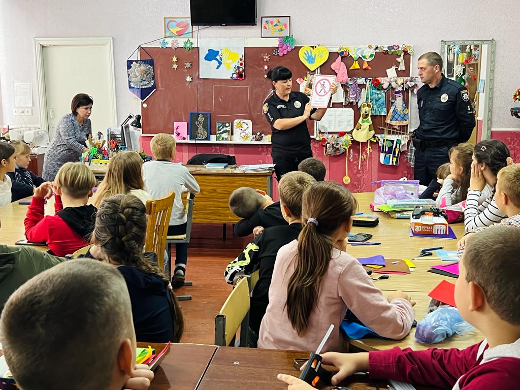 Ювенальна поліцейська Ірина Друговіна та поліцейський офіцер громади Юрій Андрієнко провели зустріч з учнями місцевої школи, темою якої була правильна поведінка на вулицях в осінньо-зимовий період.