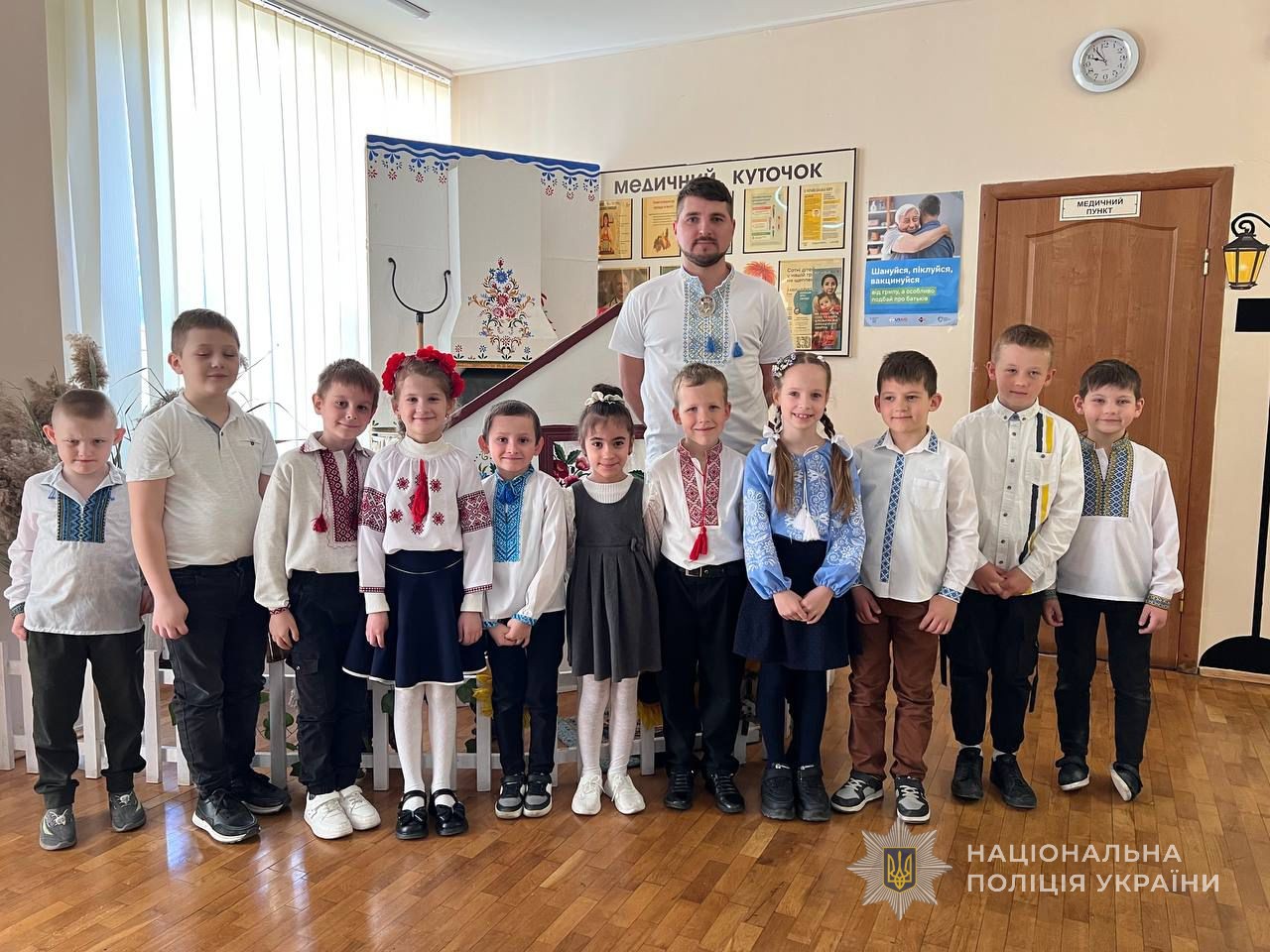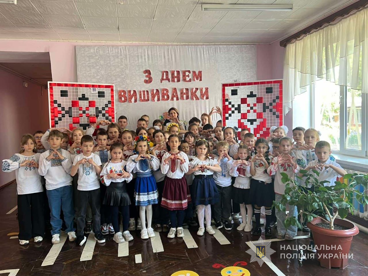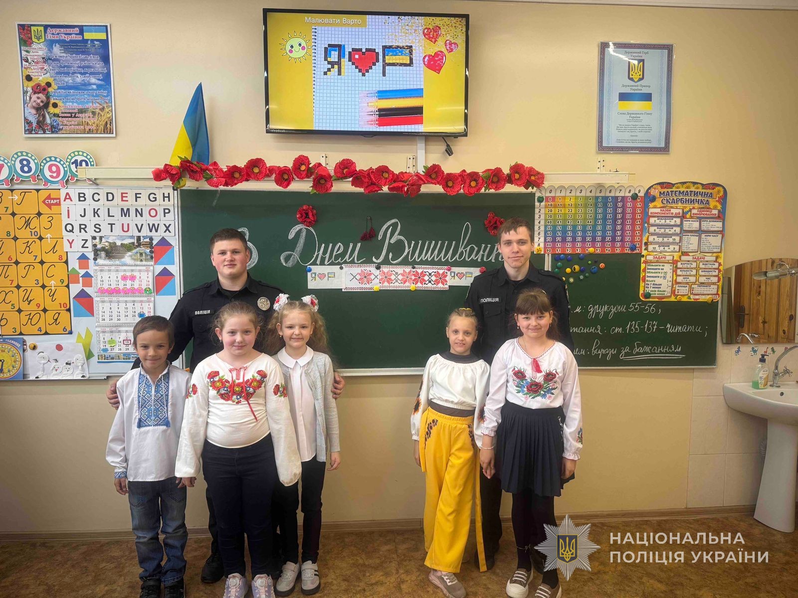 Поліцейські розповіли дітям про історію та символізм вишиванки, яка передає культуру, звичаї і родинну пам’ять нашого народу. Особливу увагу звернули на значення українського традиційного вбрання в умовах сьогодення — як одного з символів національної єдності, гідності та стійкості українців у боротьбі за свободу та незалежність. Багато спілкувалися про виняткову роль захисників та захисниць України.