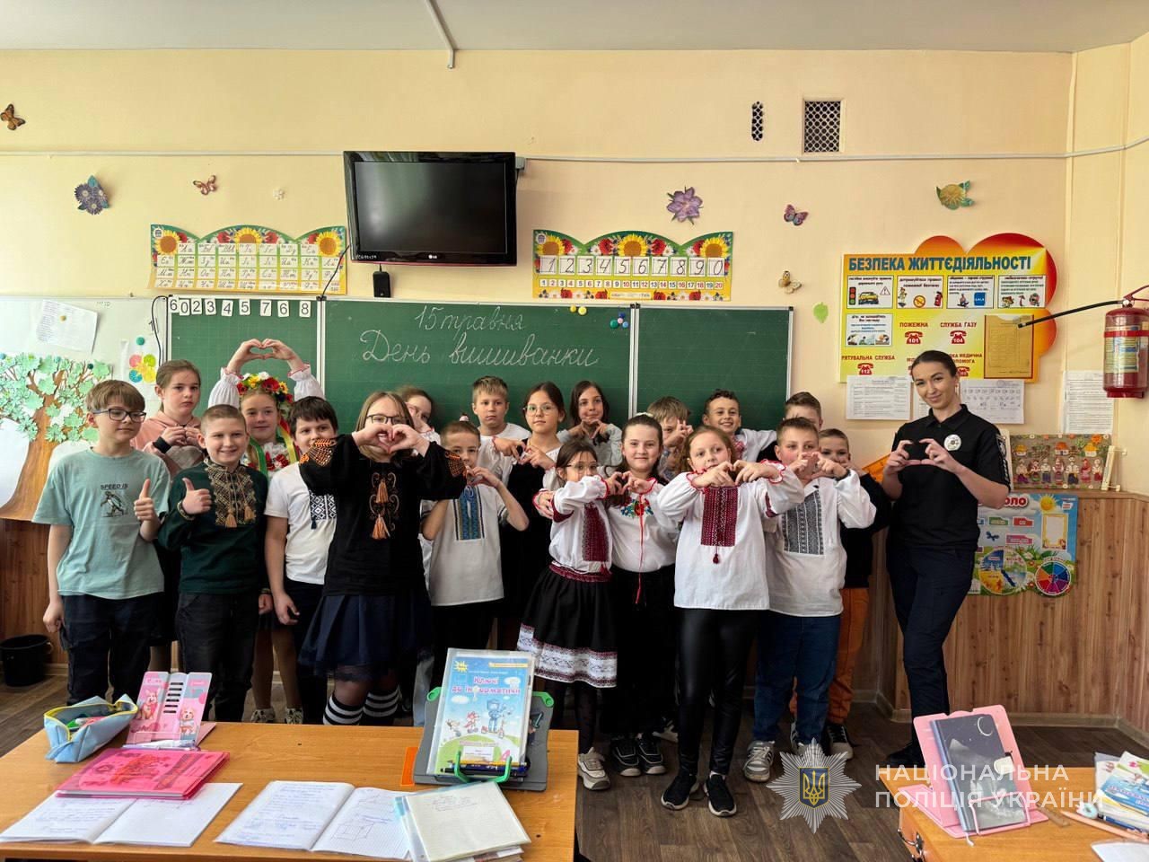 У Всесвітній день вишиванки поліцейські Одещини говорили зі школярами про національні символи, українських героїв та безпеку