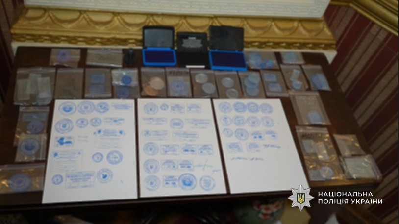 Під час санкціонованого обшуку в оселі зловмисника слідчі вилучили як речові докази низку печаток медичних та інших державних установ, техніку для друку, різноманітну документацію, серед якої — посвідки на постійне проживання іноземців на території України, пенсійні посвідчення, тимчасові посвідчення військовозобов’язаних, довідки ВЛК та МСЕК щодо непридатності клієнтів і наявності в них інвалідності з довічним строком, посвідчення співробітників правоохоронних органів, виписки з медичних карт амбулаторного та стаціонарного хворого, у тому числі й на його ім’я.